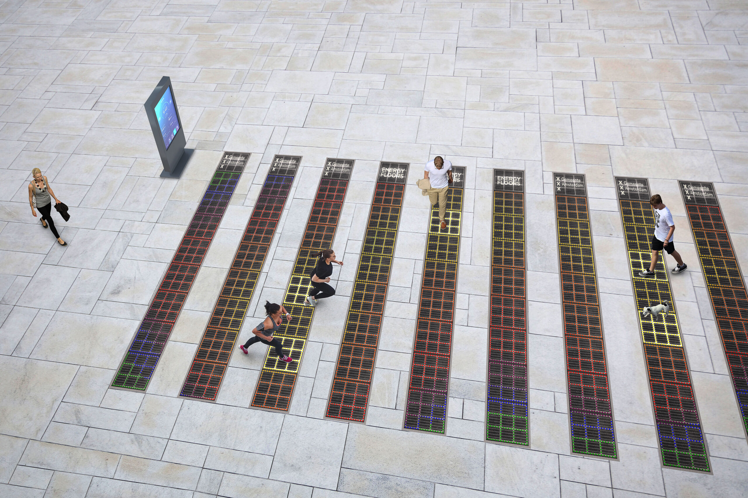 La forza trasmessa al suolo dalle migliaia di passi che compiamo tutti i giorni può essere trasformata in elettricità: questa idea guida un’azienda olandese che ha sviluppato pavimentazioni cinetiche per diverse applicazioni.