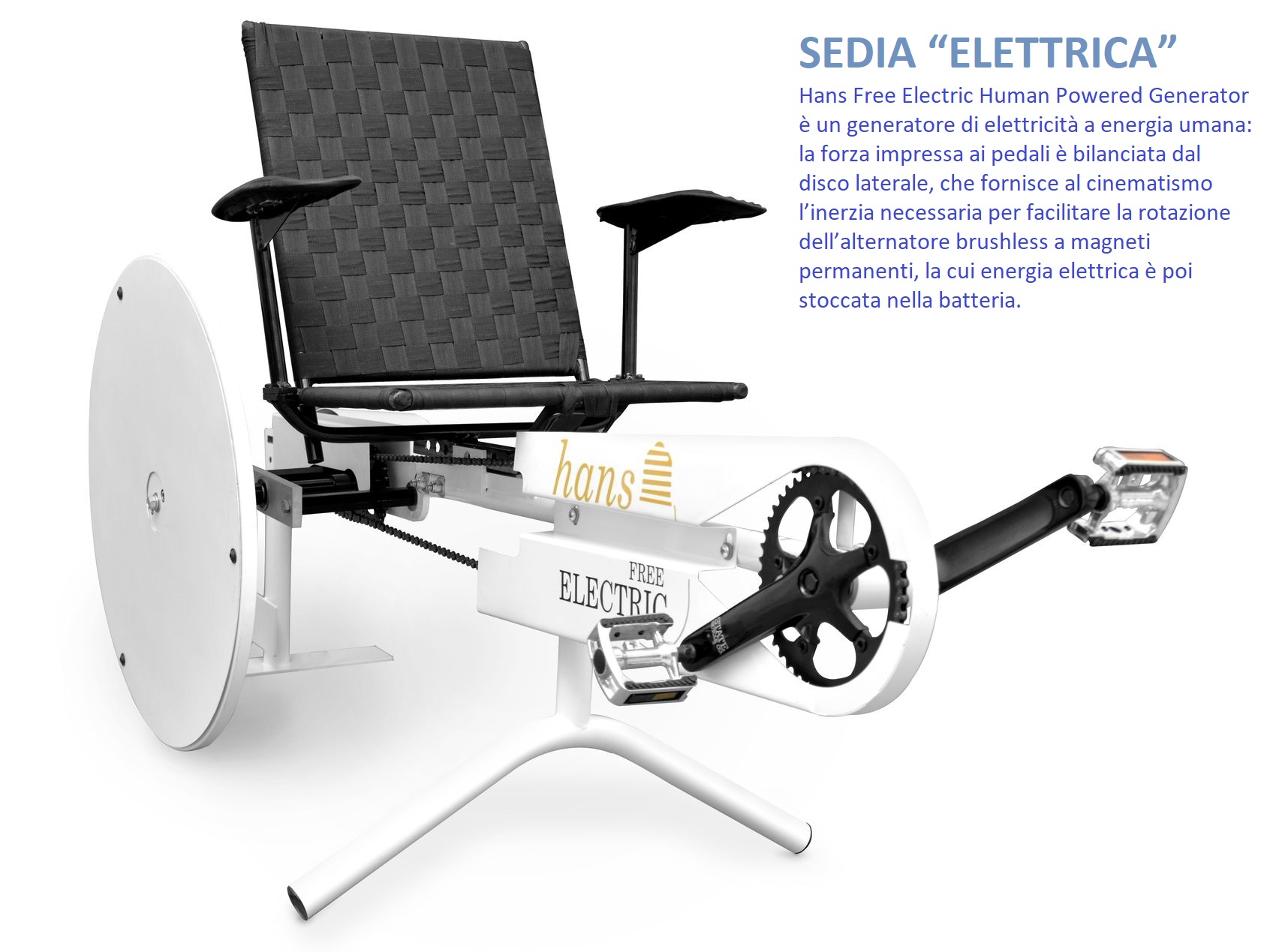 Il risultato è Hans Free Electric Human Powered Generator, una comoda cyclette il cui meccanismo è collegato a un volano meccanico, a sua volta connesso a un generatore che carica una batteria: basta pedalare un’ora per produrre l’elettricità di cui ha mediamente bisogno una famiglia indiana per illuminare la sua casa durante un’intera giornata, utilizzando lampade LED.