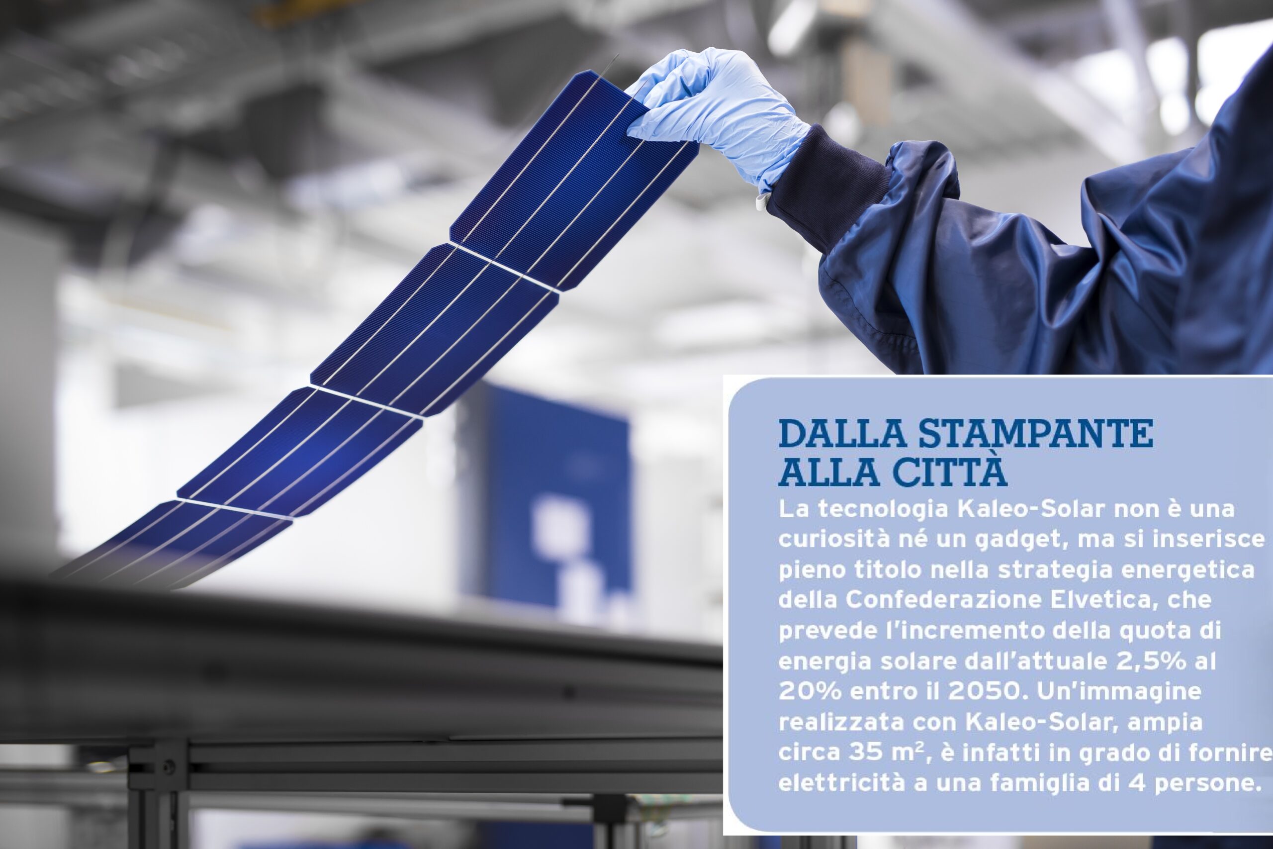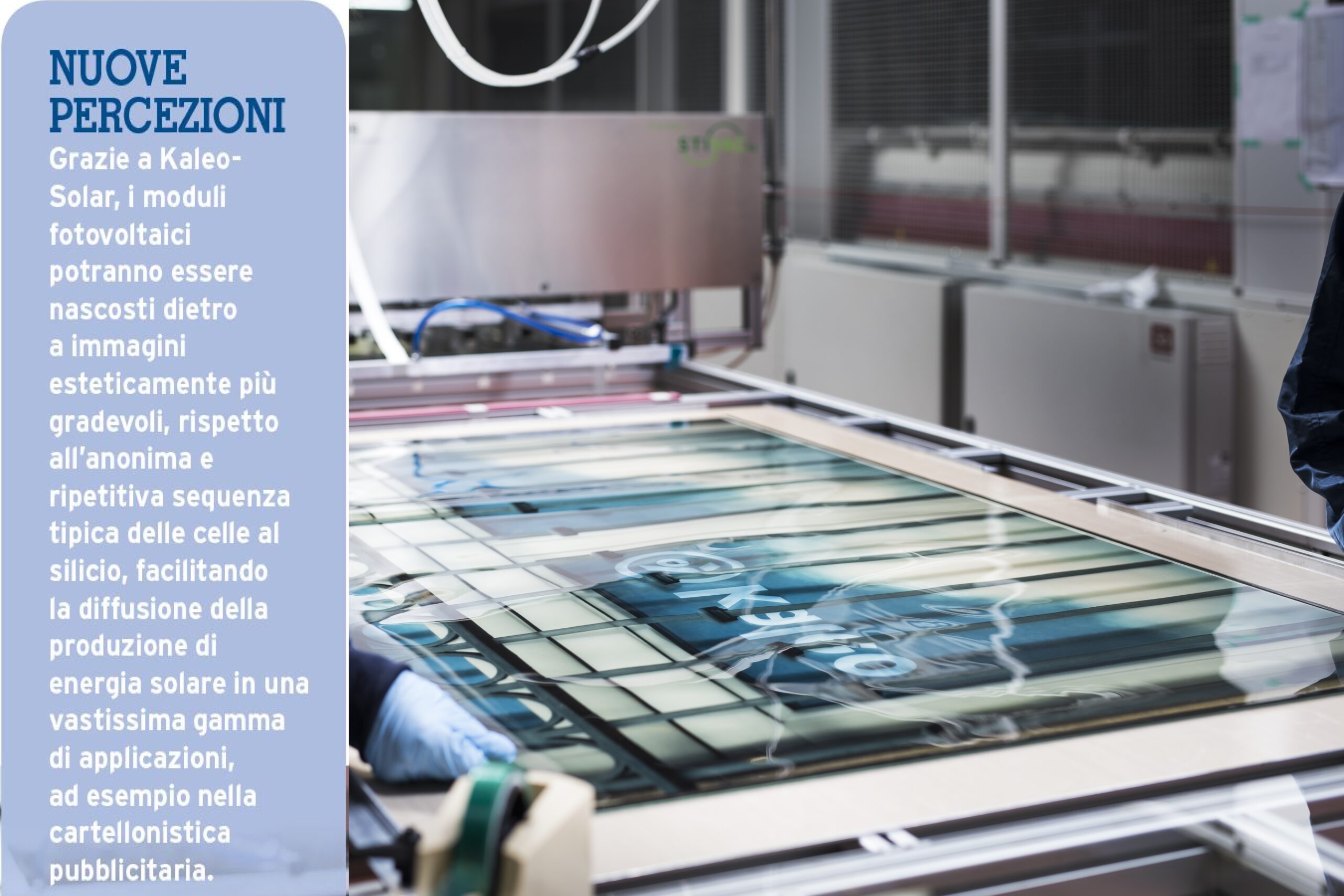 Kaleo-Solar consente infatti di celare le superfici solari attive dietro un sottile strato di materiale innovativo, permeabile alle frequenze luminose utili per la produzione di elettricità e, al contempo, stampabile con i sistemi ad alta definizione già disponibili.