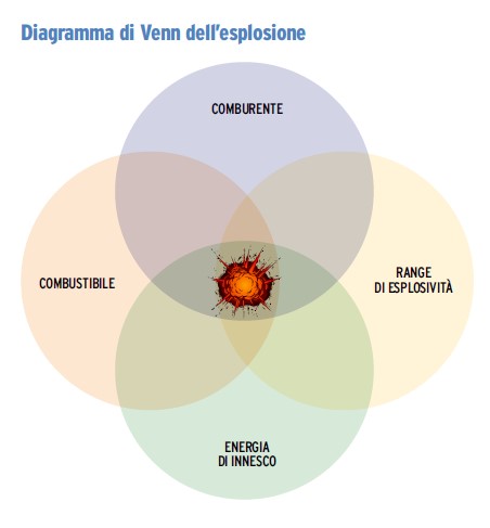Affinché un’esplosione si verifichi, è necessario che siano presenti contemporaneamente un combustibile, un comburente, una fonte di innesco e aria in cui si concentra una miscela esplosiva.