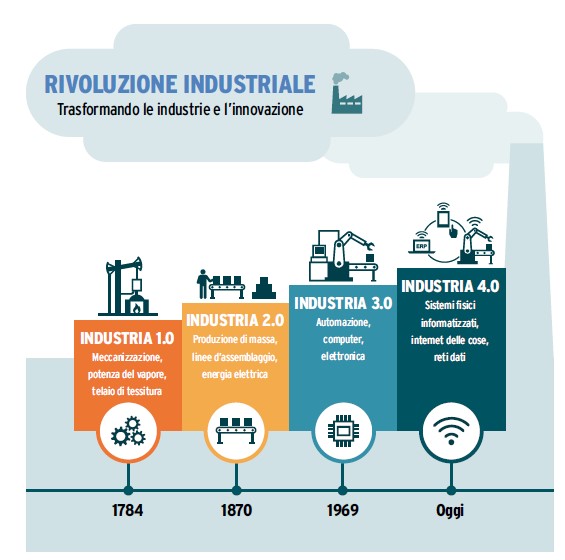 Questi periodi sono noti come “Rivoluzioni Industriali”. Si, al plurale, perché di Rivoluzione Industriale non ne è avvenuta una sola ma ben quattro e, nell’ultima – tuttora lungi dal dirsi esaurita – siamo ancora immersi.