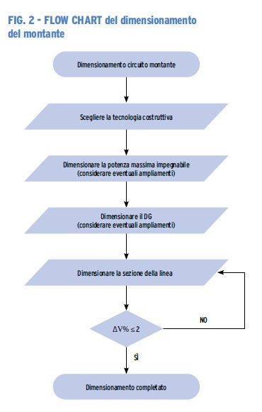 Un altro elemento da tenere in considerazione è poi la caduta di tensione che – così come raccomandato nella sezione 525 della Norma CEI 64-8 – dovrebbe essere contenuta entro il valore del 4% della tensione nominale tra l’origine dell’impianto e qualunque apparecchio utilizzatore. Nella norma si utilizza la forma della raccomandazione (al posto della prescrizione) perché l’ambito normativo è quello della funzionalità e non della sicurezza; la raccomandazione, che ha valore solo in assenza di specifiche indicazioni da parte del committente, interessa nella misura maggiore il montante come conduttura che porta la risultante delle correnti di tutti i circuiti dell’impianto: se l’indicazione normativa viene trascurata, si possono causare malfunzionamenti o non funzionamenti di utilizzatori.