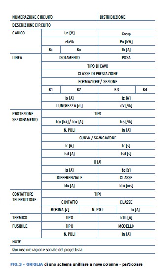 Queste informazioni vanno integrate con quelle derivanti dagli altri documenti di progetto (relazioni, planimetrie, schemi unifilari, particolari costruttivi); ma, per avere una visione complessiva dell’impianto, magari in fase di primo approccio a fini, per esempio, di verifica tecnica esse sono utilissime benché sommarie.