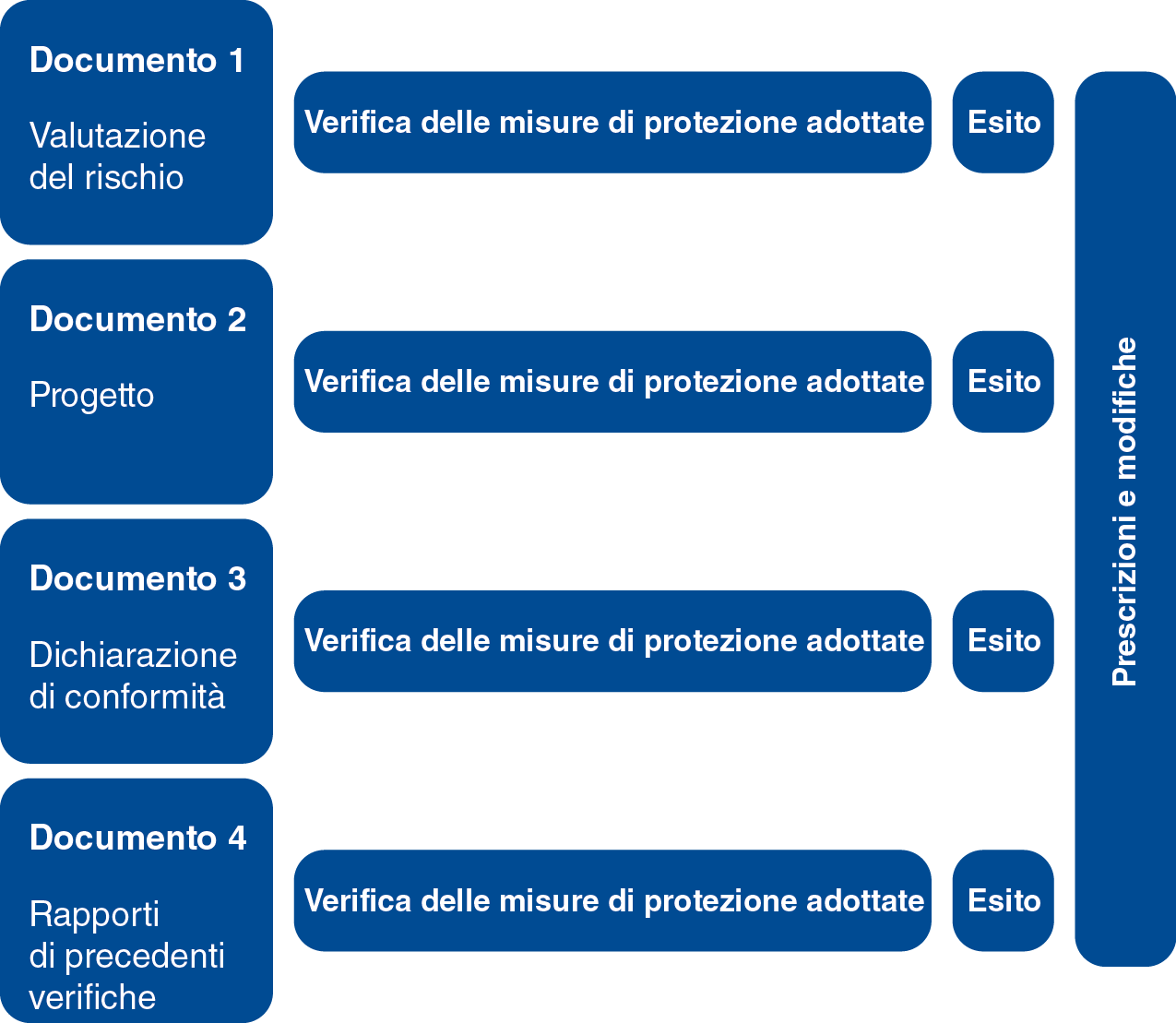 La figura 2 riguarda l’analisi dei documenti basilari dai quali non può prescindere  la disciplina del parafulmine sia sotto l’aspetto burocratico che funzionale: si deve partire dalla valutazione del rischio, passare al progetto e alle relative dichiarazioni di conformità rilasciate dall’ installatore, per approdare ai singoli esiti e alle eventuali prescrizioni del collaudatore.