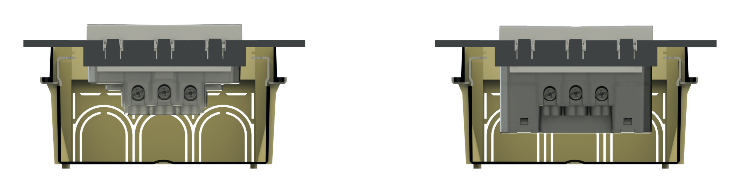 Entrambe le versioni del prodotto hanno un unico morsetto di alimentazione che facilita e velocizza il lavoro dell’installatore evitando di fare ponticelli per collegare più prese elettriche fra di loro.