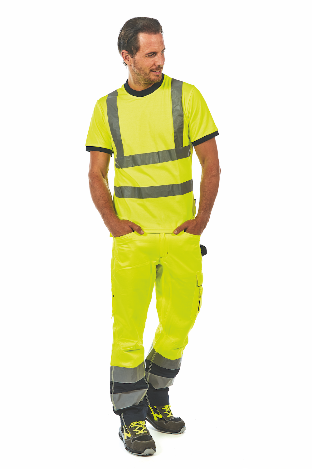 Protagonista è, innanzitutto, il pantalone Light, disponibile nelle tinte giallo e arancione fluo, dotato di strisce riflettenti applicate su entrambe le gambe e di nastro reflex sul passante tubolare posteriore. Comodo e funzionale, è progettato per unire resistenza all’usura, grazie alle cuciture rinforzate, e supporto al lavoratore attraverso le molteplici tasche multifunzionali disponibili – tra cui portautensili e portabadge a scomparsa – e la fettuccia portamartello. Le ginocchia preformate e la regolazione in vita con elastico assicurano, inoltre, un’ottima vestibilità.
