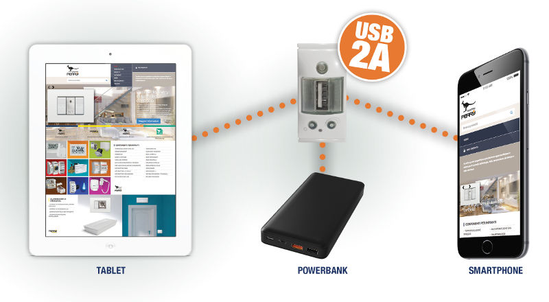 Come ogni prodotto della gamma 1 Modulo per serie civili anche il caricabatterie 1 Modulo di Perry è totalmente compatibile con le serie civili più diffuse sul mercato, grazie a un vasto assortimento di frontalini di finitura opzionali.