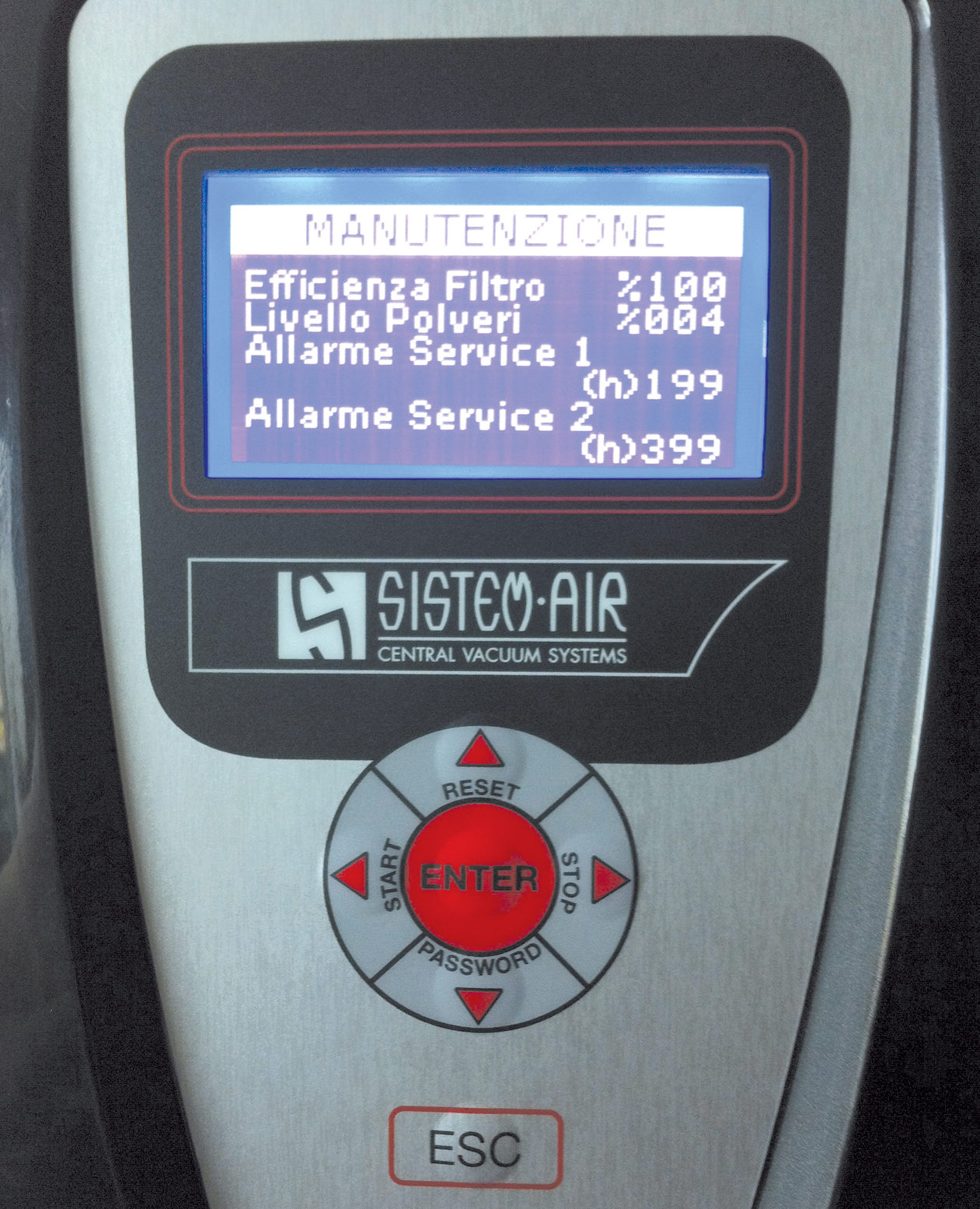Questo computer ha la funzione di vero e proprio assistente personalizzato, che avvisa quando è necessario fare le manutenzioni alla macchina, in modo da renderne massima l’efficienza ad ogni utilizzo. Non si tratta di un contatore che restituisce degli allarmi generici, ma contiene un microprocessore, collegato ad un sensore di pressione che rileva la prestazione aspirante e tiene memoria dei valori rilevati, elaborandoli per restituire un quadro completo sulle condizioni di funzionamento della centrale.