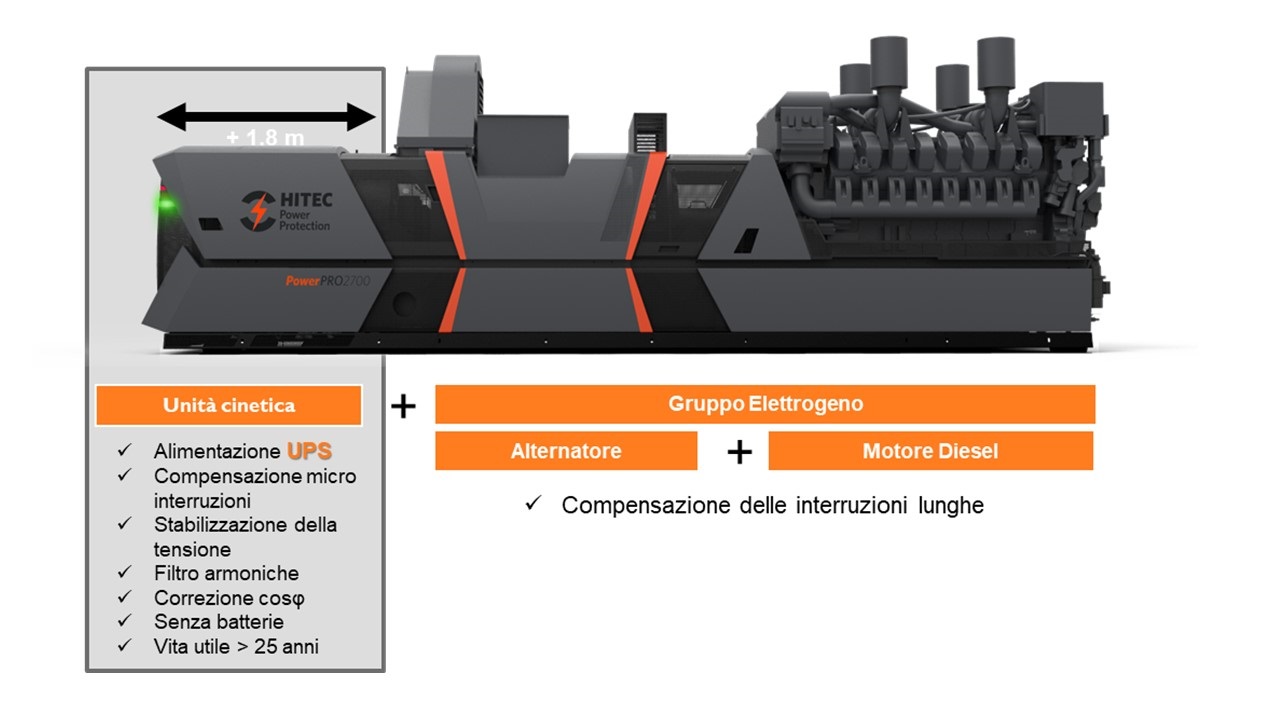Un’altra caratteristica importante dei gruppi rotanti di continuità Hitec è di non necessitare di batterie per l’immagazzinamento dell’energia e di essere pertanto molto più sostenibili rispetto ai sistemi UPS statici.