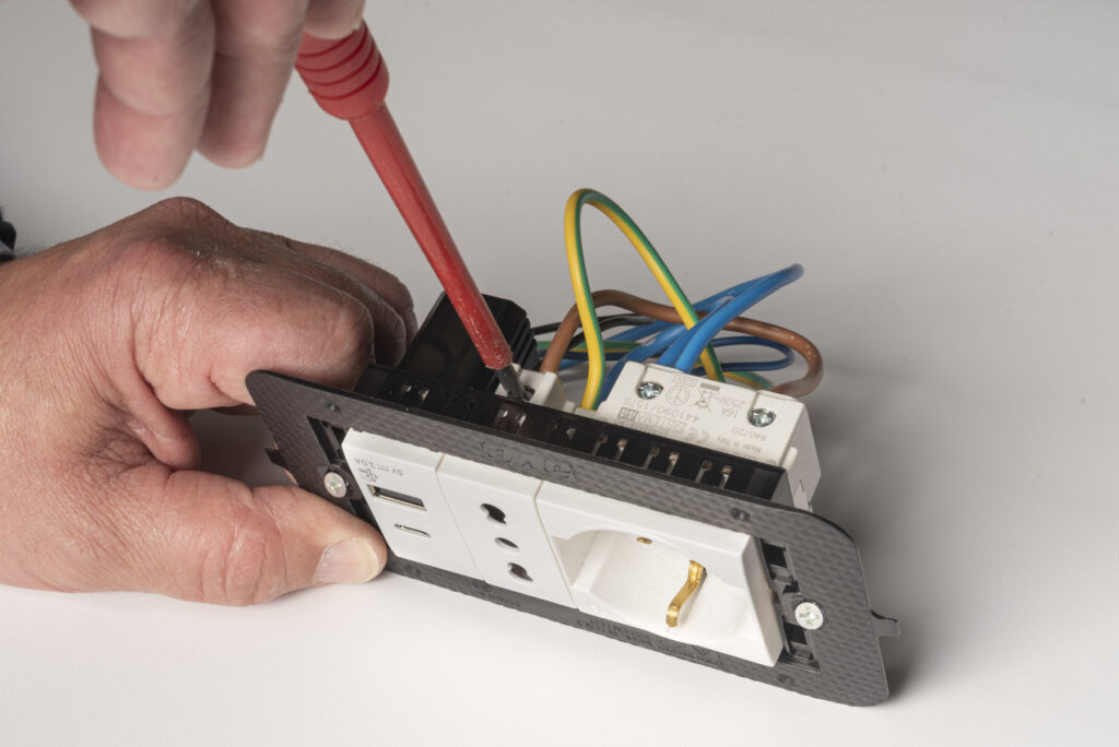 È una soluzione in linea con l’evoluzione dell’abitare: il monoblocco AVE include infatti le due prese più installate negli impianti elettrici (presa bipasso per spine da 10 A e 16 A e presa schuko) e può offrire entrambi gli standard USB oggi più richiesti, l’attuale tipo A e il tipo C, lo standard per il futuro. Tutte le prese del monoblocco AVE possono essere adoperate contemporaneamente così da incontrare al meglio le esigenze dei clienti finali.