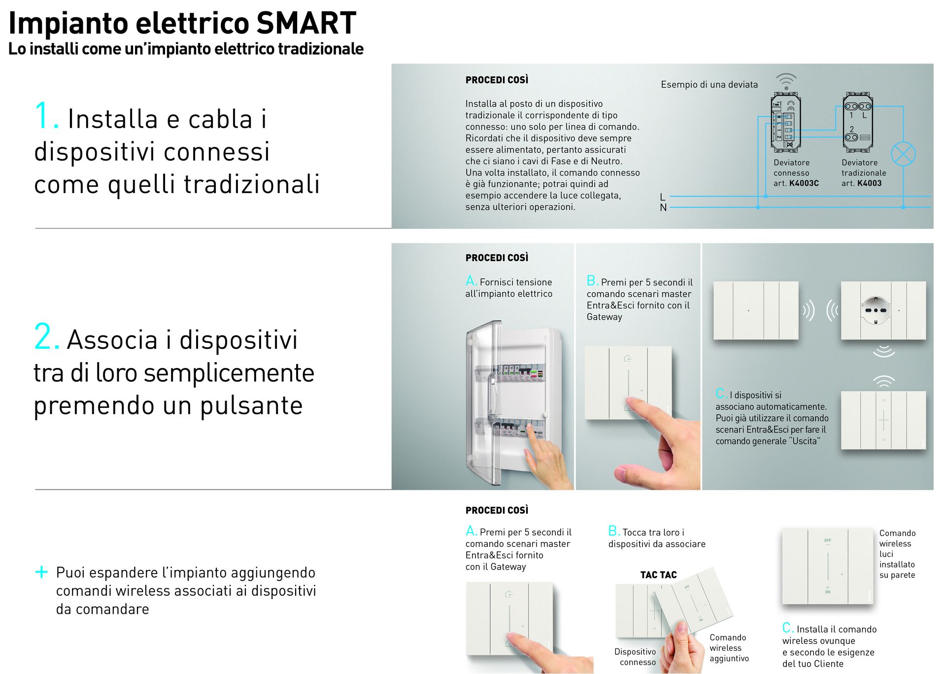 Per provare la facilità d’installazione e tutti i vantaggi dell’impianto smart, BTicino ha realizzato semplici Starter kit in confezioni che contengono istruzioni, schemi, gateway e comando scenari entrata/ uscita e notte/ giorno.