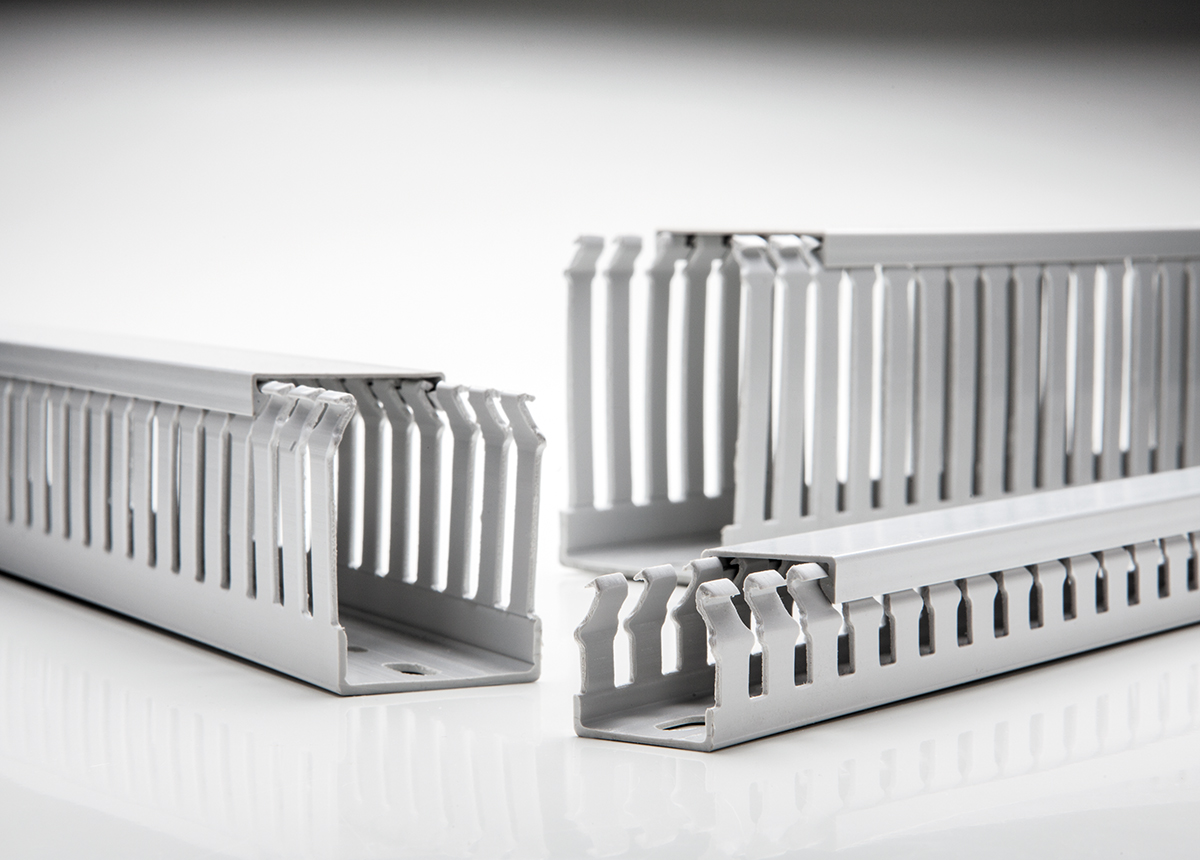 In colore grigio chiaro RAL 7035, la gamma di Canalette TD-HF è disponibile in 15 dimensioni: dalla 25x25mm alla 125x75mm lunghezza 2000mm, tutte modulo 12,5mm con feritoia 5mm. Con un range di temperature di esercizio che può variare da -25°C a +90°C garantiscono massima flessibilità ai picchi termici all’interno del quadro.