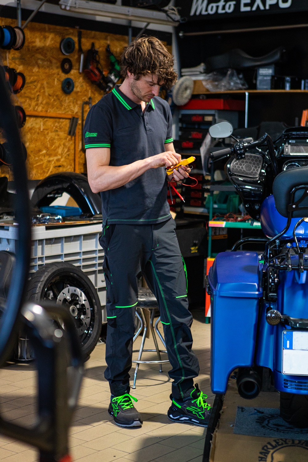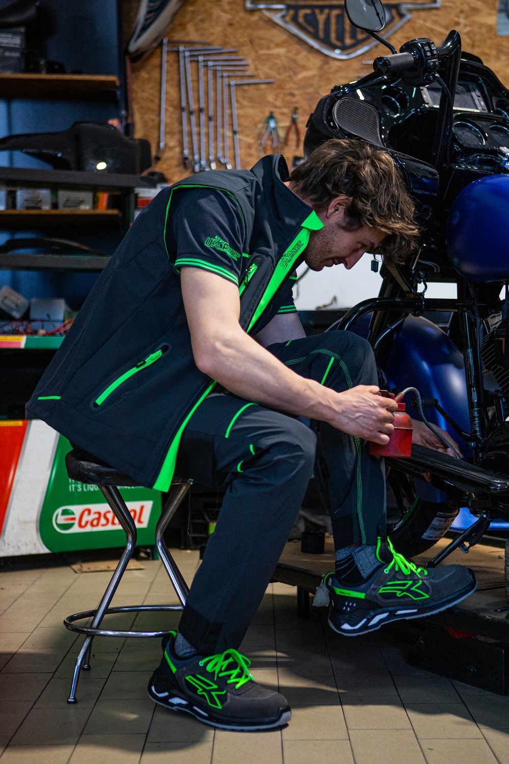 Per creare il completo perfetto c’è World, il pantalone in tessuto U-Power 4 way, morbido sulla pelle, idrorepellente, traspirante e ad asciugatura rapida. Anche questo capo offre tasche di diverse tipologie, dal porta-badge ai porta-utensili. L’elastico in vita con un sistema innovativo di regolazione a scomparsa e la vestibilità slim agevolano i movimenti e permettono al lavoratore di sentirsi sempre in ordine.