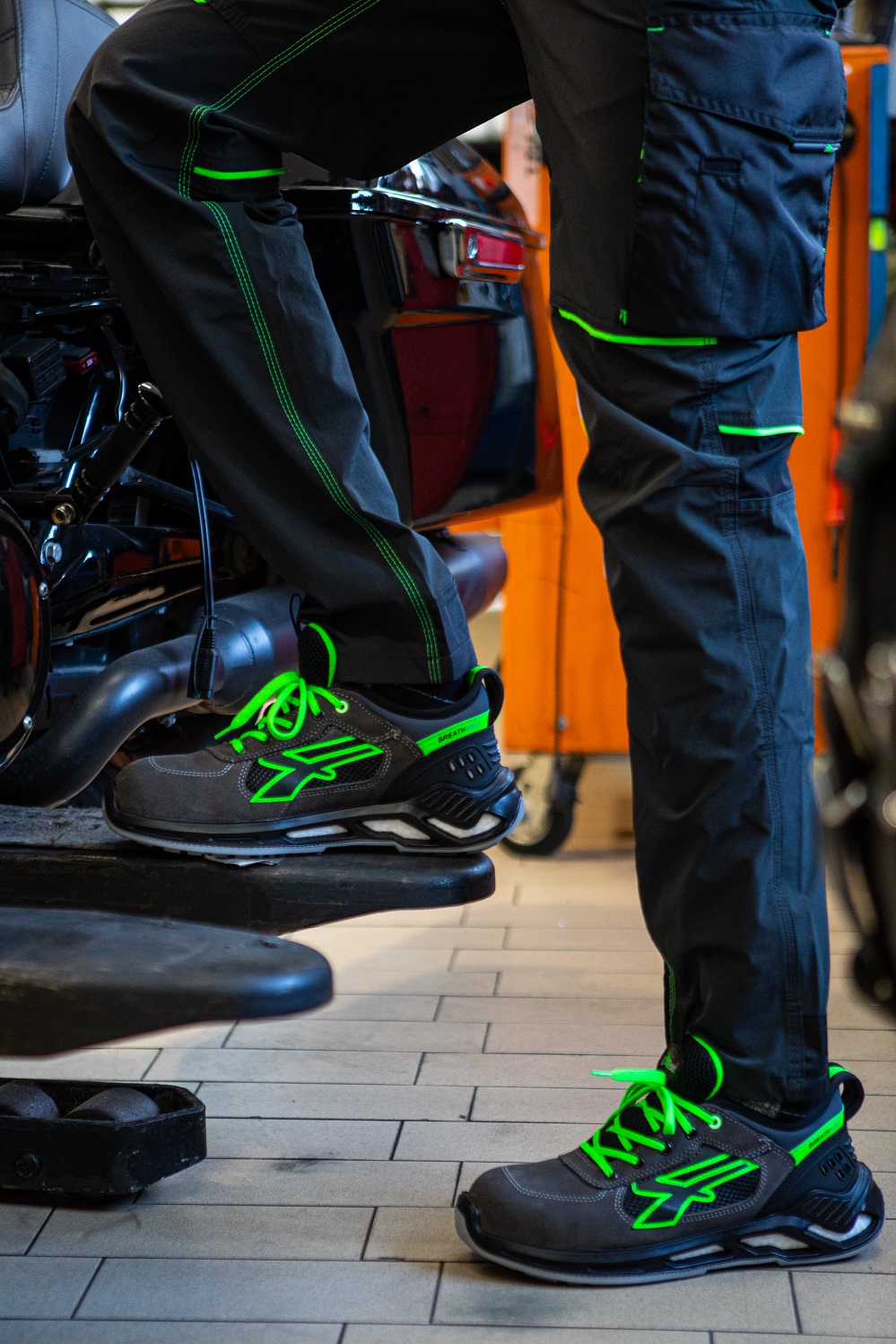 Il total-look proposto, infine, poggia ben saldo sulle calzature RED360 Negan, la calzatura antiinfortunistica S1P SRC ESD, contraddistinta dalla combo sistema Infinergy® nella suola e sottopiede interno WOW, integrato dalla tecnologia Shield sul tallone. I dettagli verde fluo coordinano l’insieme.