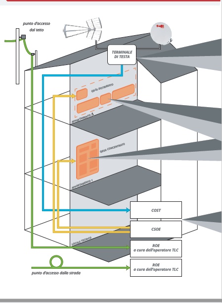 La fase di installazione è semplificata dal fatto che tutte le bretelle hanno un sistema di traino che non stressa le fibre e protegge i connettori. Dopo l’infilaggio è sufficiente collegare i connettori dei servizi agli splitter e alle bussole che sono poste nello CSOE in modo tale da non consentire errori di collegamento. Nell’appartamento i connettori sono collegati alle bussole della STOA rispettando la colorazione di riferimento.