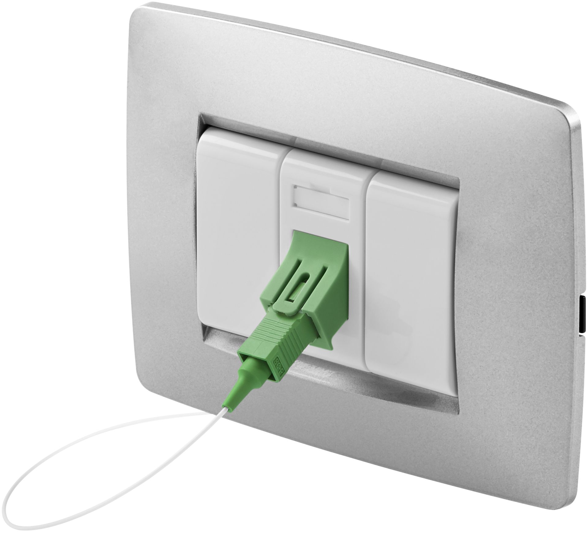 3. Prese in fibra ottica per prese civili. Prese da incasso per serie civili, realizzate con bussole SC/APC, che consentono di collegare le utenze domestiche direttamente alla fibra ottica.