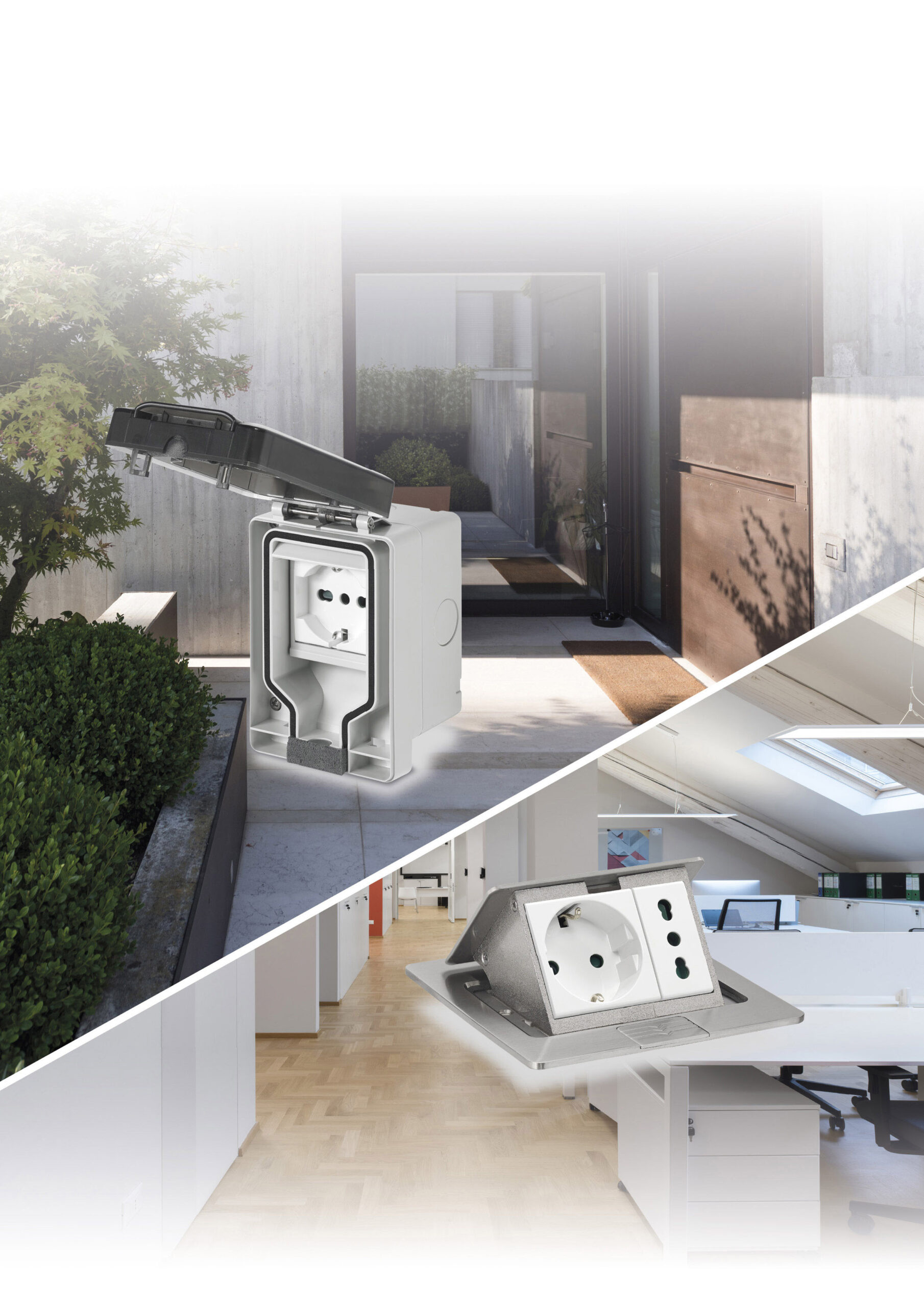 All’esterno dell’edificio, così come negli scantinati o nei garage, le prese di corrente sono infatti spesso soggette alle intemperie o a danneggiamenti di varia natura, che possono risultare pericolosi e poco sicuri. Il nuovo contenitore stagno Vimar garantisce la massima protezione e fornisce una totale sicurezza contro gli agenti atmosferici anche a spina inserita. È disponibile in due versioni, vuoto da cablare con qualsiasi dispositivo delle serie Vimar o con presa Universale SICURY della serie Plana.