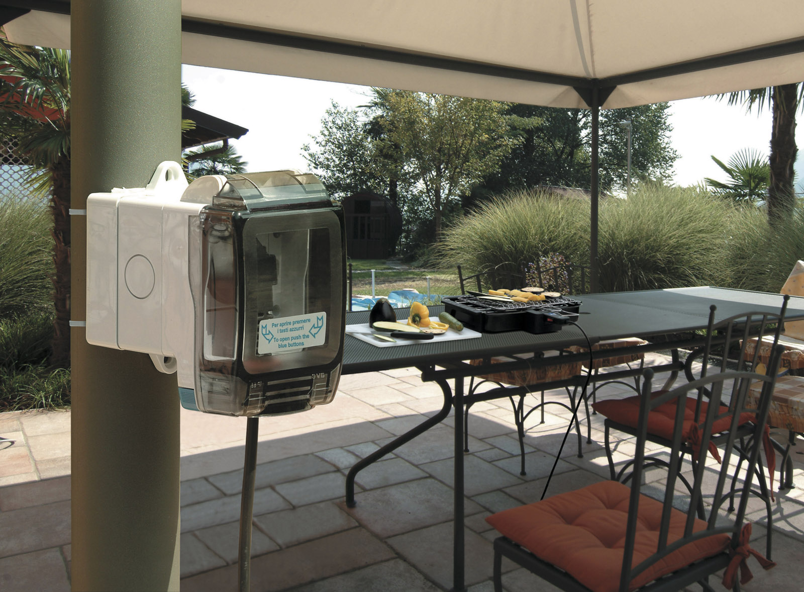 L’esigenza di proteggere la spina inserita nella presa in installazioni all’esterno o in giardino fino ad oggi non poteva essere completamente soddisfatta. Infatti, le soluzioni proposte dal mercato offrivano il grado di protezione, tipicamente IP55, solo con sportello chiuso. L’introduzione di una spina per alimentare un’utenza determinava il venir meno del grado di protezione dichiarato.