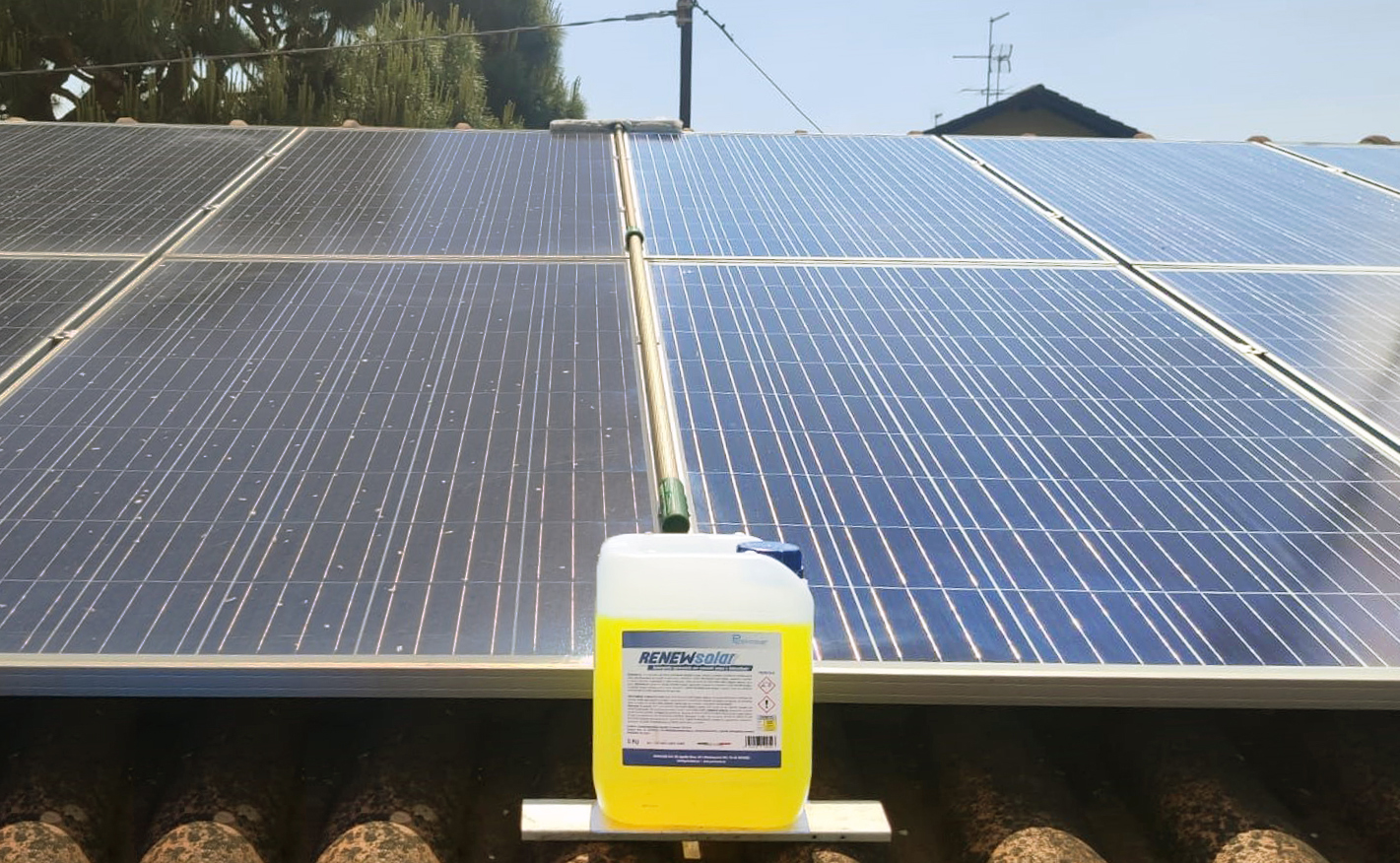 RENEW Solar ostacola il ri-deposito di polvere e sporco, assicurando una massima resa energetica degli impianti e lunghi intervalli di pulizia. Grazie all’alta qualità del prodotto sarà possibile pulire a fondo anche lo sporco più ostinato come resina, fuliggine, oli e grassi non intaccando la parte interessata ed evitando l’accumulo di calcare tipico di zone molto piovose e umide.
