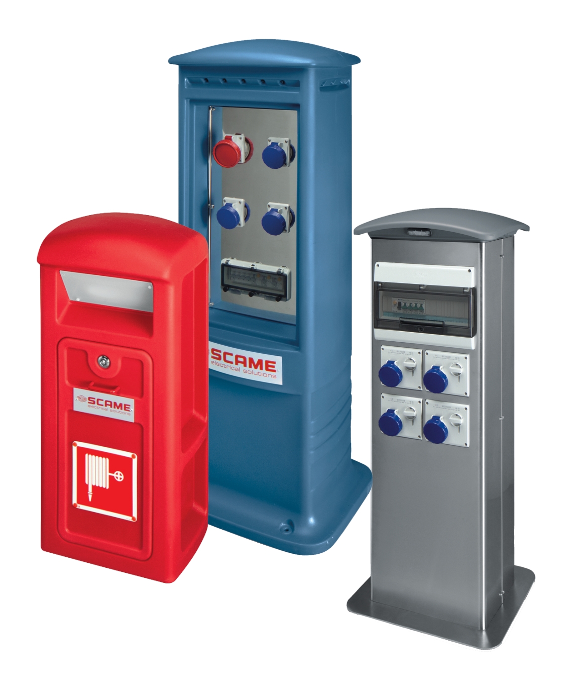 Nell’offerta Scame trovano spazio versioni in lamiera verniciata, in acciaio INOX e materiale termoplastico (tecnopolimero per uso esterno antigraffio) in diverse colorazioni. Questa caratteristica consente di identificare aree diverse (ad esempio all’interno di un camping), garantendo il perfetto adattamento all’ambiente in cui vengono posizionati, nonché l’individuazione dei prodotti adibiti al soccorso antincendio (realizzati in materiale termoplastico di colore rosso).