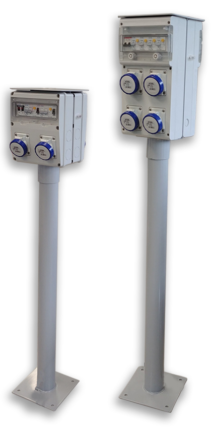 Erogatori di energiaDi nuovo inserimento, le versioni mono e bifacciali su supporto in acciaio zincato e verniciato con vernice epossidica poliestere, munito di tettuccio protettivo e montato su palo, offrono configurazioni fino ad otto prese con la comodità e la sicurezza del vano protezioni illuminato tramite led comandato da sensore crepuscolare.