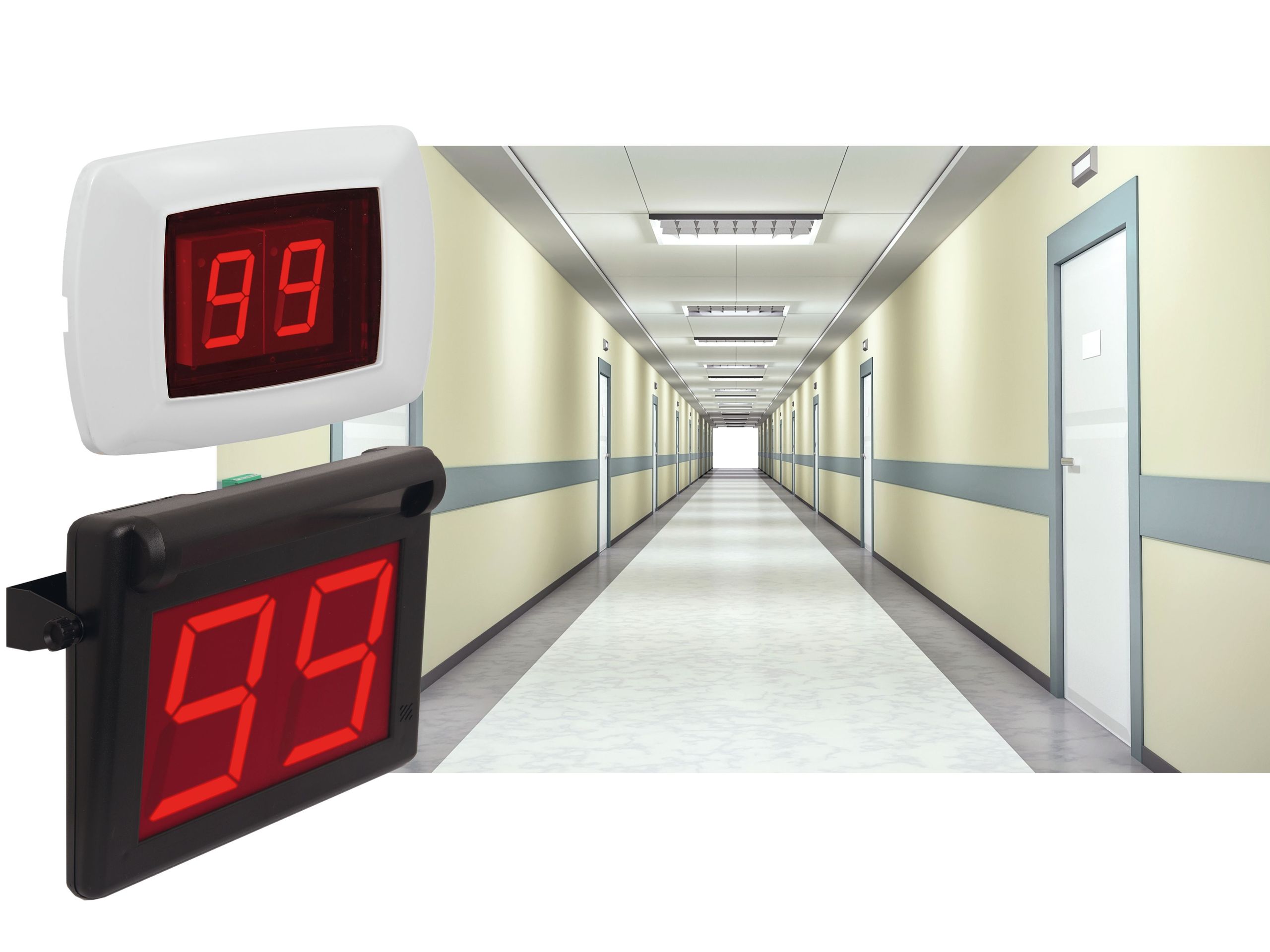 Il quadro display, disponibile in due versioni -per montaggio diretto in scatola 503 e per montaggio a parete-, è alimentato a 12 V ac, così come i concentratori di camera, che hanno il compito di gestire direttamente la chiamata a pulsante e il reset locale, oltre a pilotare il fuori porta relativo.