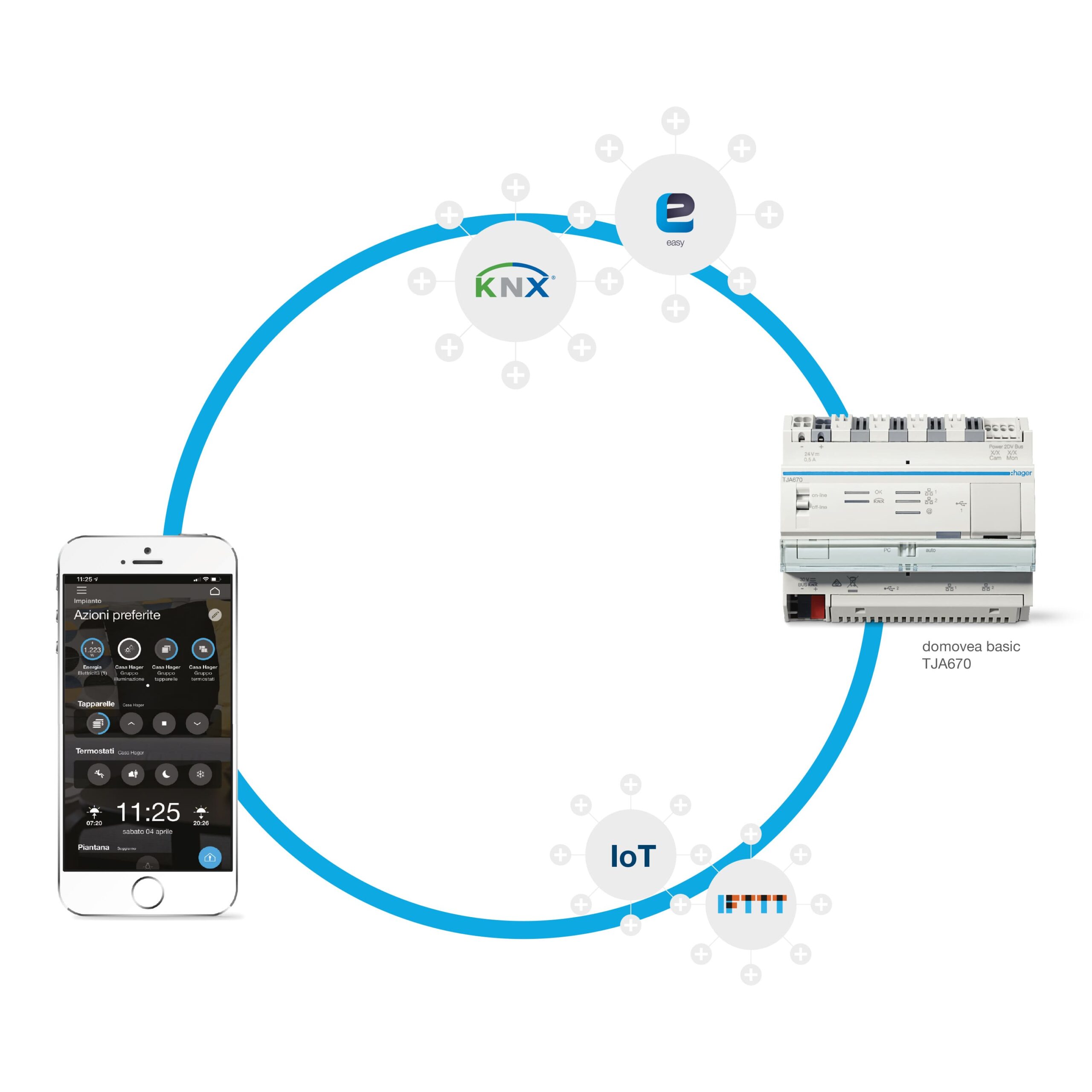 Il nuovo domovea, disponibile in due versioni, basic ed expert, integra infatti il configuratore Easy rendendo ancora più facile, anche da remoto via cloud, la configurazione di impianti KNX. Non solo, è possibile usare domovea come gateway IP per configurare gli impianti KNX utilizzando il software standard ETS. Anche gli oggetti smart, come ad esempio fotocamere, dispositivi multimediali e alcuni elettrodomestici, possono essere resi disponibili grazie al controller IoT inserito in domovea. Inoltre, attraverso il servizio IFTTT, è possibile utilizzare e integrare anche moltissimi altri servizi digitali.