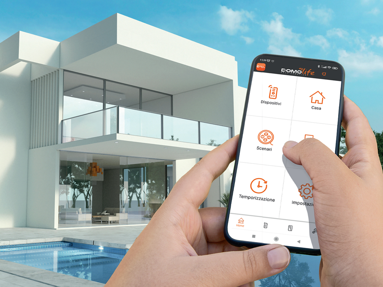 DOMO myLife offre una vasta gamma di funzioni per facilitare l’utilizzo dei dispositivi connessi in ambito residenziale, commerciale o terziario: è possibile gestire aspetti come l’accensione e lo spegnimento programmato, la gestione di tende, tapparelle e porte da garage, la verifica in tempo reale della temperatura degli ambienti interni e il monitoraggio del consumo energetico. Il suo controllo avviene principalmente attraverso l’app gratuita per smartphone e tablet “D myLife” (disponibile su App Store e Google Play Store), manualmente tramite gli appositi apparecchi oppure, prossimamente, anche utilizzando gli assistenti vocali più diffusi. Optando per l’app “D myLife”, che non necessita di software aggiuntivi per la configurazione dell’impianto, sarà possibile attivare, visualizzare e regolare il sistema di domotica ovunque ci si trovi, beneficiando di un’interfaccia user friendly per avere il pieno controllo di tutte le funzioni domestiche di DOMO myLife… nelle proprie mani!