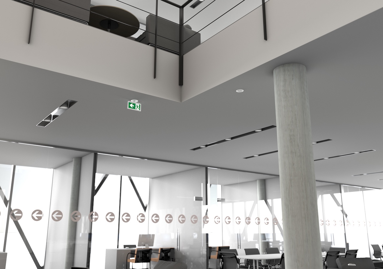 Gli installatori possono configurare in modo rapido la sorgente LED multi-lens integrata tramite un semplice dip-switch, passando dalla modalità per l’illuminazione di vie di esodo strette a quella per aree ampie e antipanico.