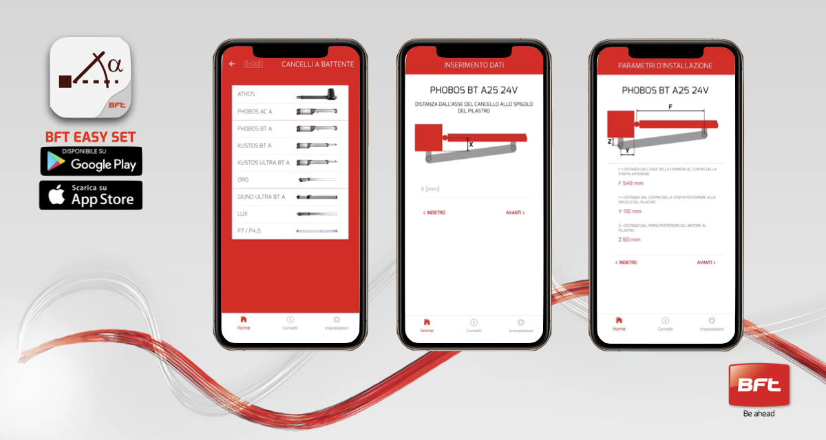 Bft Easy Set è disponibile gratis per Android e iOS: scaricala subito e scopri come calcolare in automatico i parametri di installazione delle tue automazioni Bft!