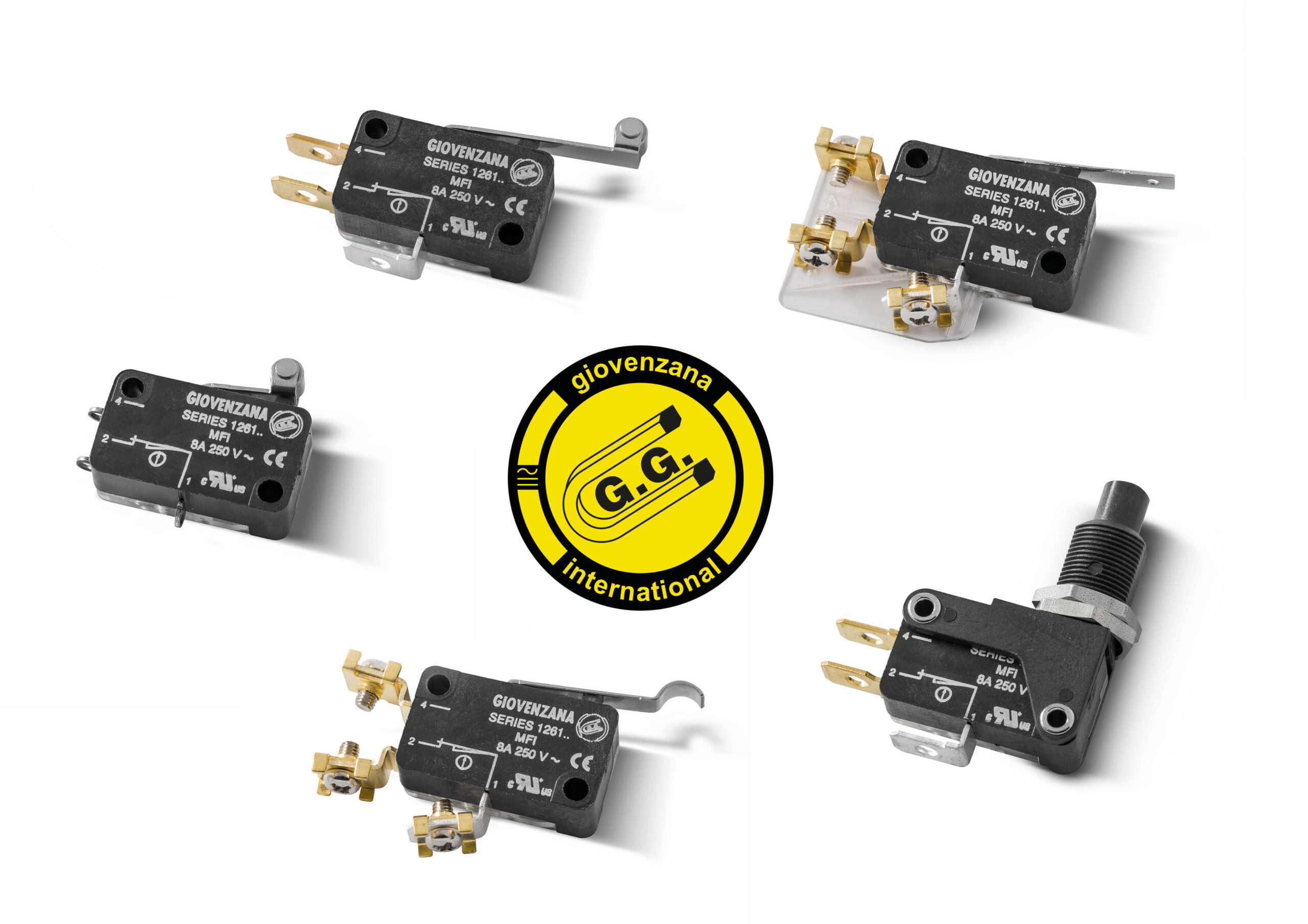 La gamma Giovenzana di micro interruttori di posizione è composta di componenti: con terminali fastoon, a vite, a saldare, a vite con protezione e con attuatore a torre.