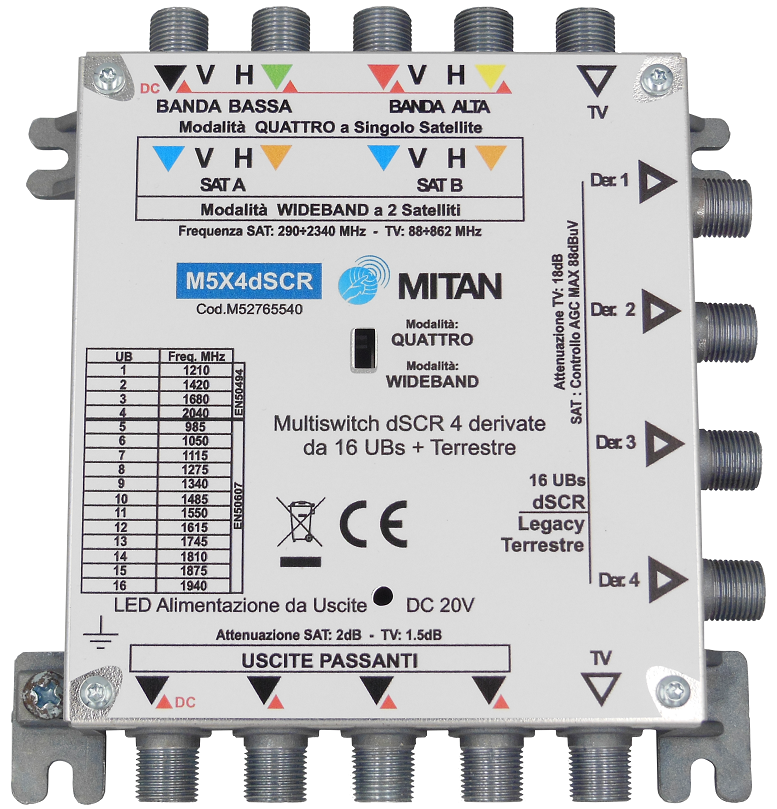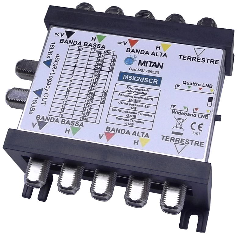 Per un impianto satellitare a multiswitch moderno e flessibile MITAN ha introdotto la tecnologia dSCR che, grazie alla gestione digitale dei segnali, permette di sfruttare un numero più alto di frequenze alle quali collegare uno o più dispositivi, attraverso un unico cavo di derivazione verso la presa TV/SAT.