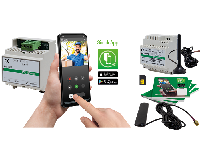 Il modulo 1406 è l’interfaccia progettata da Comelit per edifici residenziali con più abitazioni, come i condomini, che consente di inoltrare le chiamate videocitofoniche direttamente sullo smartphone. Si tratta di un semplice dispositivo “plug & play” che, in nuovi impianti o nell’impianto esistente videocitofonico Comelit 2 fili di qualunque edificio, li rende “smart”, permettendo a chi vi abita di gestire tutte le funzioni videocitofoniche dal proprio smartphone attraverso l’app SimpleApp.