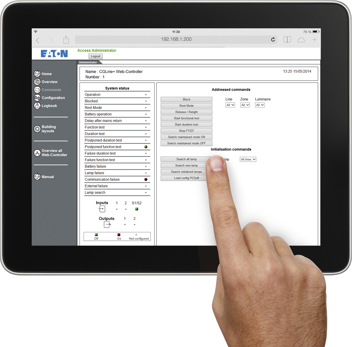 CGLine+ di Eaton é un sistema di facile utilizzo per il monitoraggio degli apparecchi di illuminazione di emergenza. Garantisce la rilevazione delle anomalie e la loro registrazione in tempo reale, permettendo di ridurre drasticamente i costi e i tempi relativi ai controlli periodici manuali negli edifici.