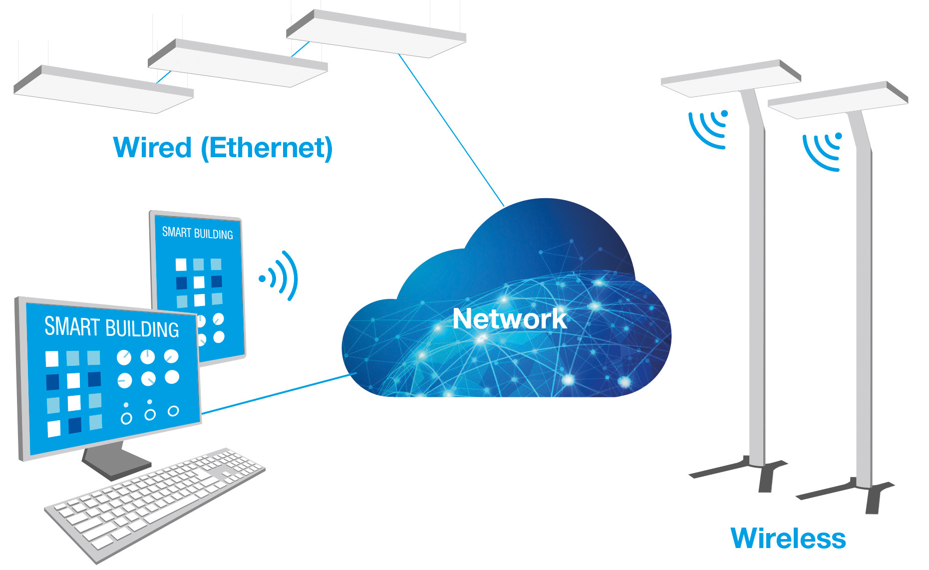 Sensori o trasmettitori di segnali posti nei corpi illuminanti raccolgono dati poi memorizzati in un cloud e trasmessi ai sistemi tecnici: riscaldamento, ventilazione, tapparelle, sistema di sicurezza e comandi della luce.