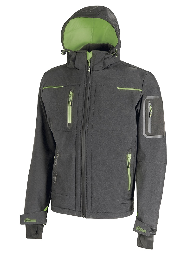 Dotata di morbida fodera interna in micro-fleece fluo, di chiusura centrale con zip impermeabile e inserti in reflex, si contraddistingue per i numerosi equipaggiamenti al servizio del lavoratore: cappuccio regolabile staccabile, polsini regolabili con velcro e polsino antivento elasticizzato con foro passa-pollice, differenti tipi di tasche (frontali chiuse con zip fluo e coulisse anti-impigliamento regolabile all’interno; porta cellulare sul petto; due interne; una supplementare termosaldata su manica sinistra), fondo sagomato, nastro reflex su colletto nella parte posteriore, logo U-Power tono su tono.