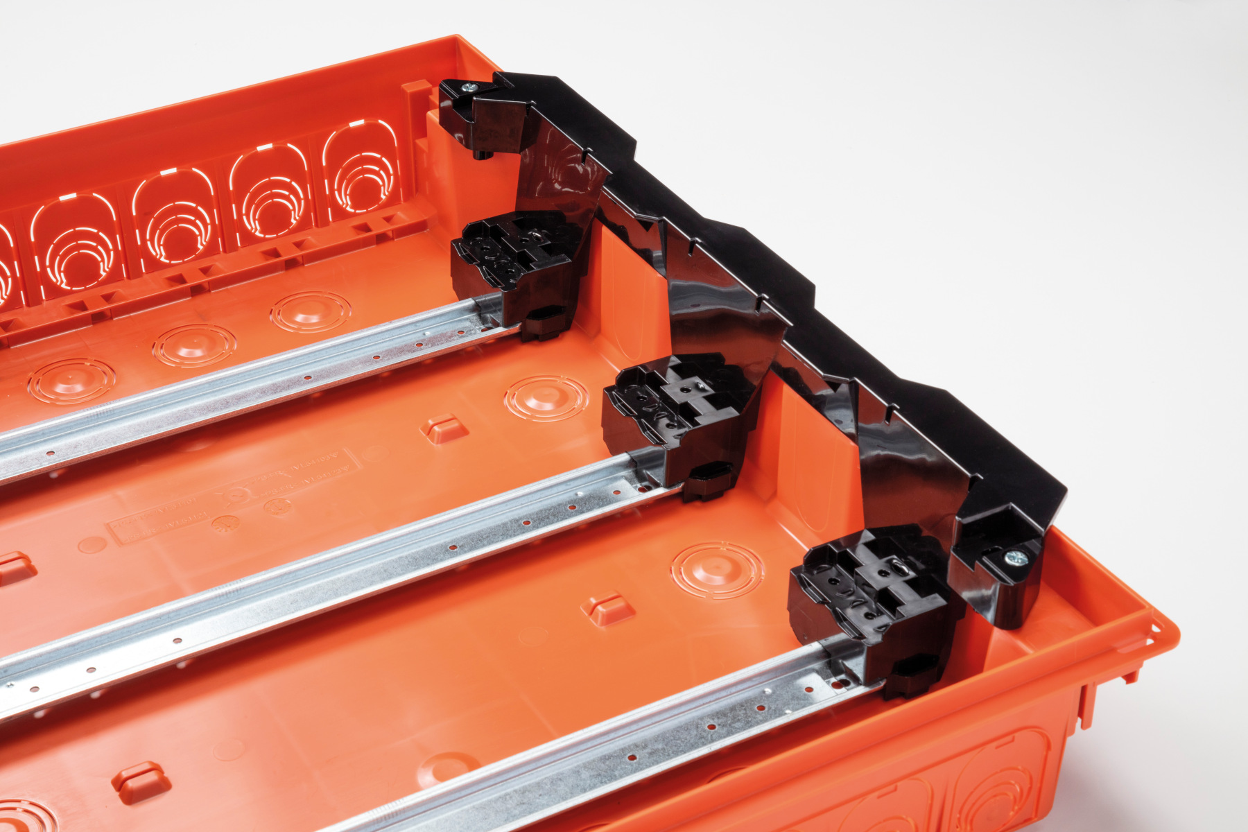 Un altro valido supporto è fornito dalle pre-fratture presenti lungo le scatole che facilitano l’inserimento dei tubi corrugati. Inoltre, l’aggancio delle fascette di cablaggio è agevolato dai numerosi punti di fissaggio presenti nei telai dei centralini, che consentono di realizzare un lavoro ordinato e pulito.