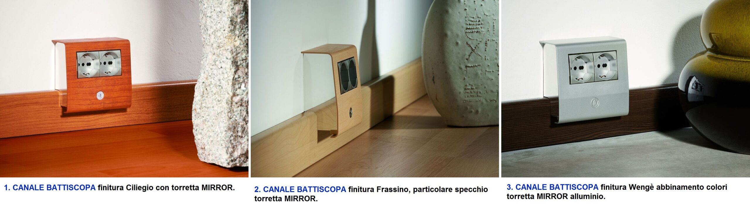 Tra gli accessori presenti nella gamma della serie WING si distinguono, per la cura nel design, le nuove torrette autoportanti MIRROR che permettono la posa di moduli della serie civile tipo Bticino Living- Light, senza l’uso di telai porta apparecchi e placche di finitura. L’assenza di telai e placche assicura minime dimensioni ed impatto visivo. Ad alleggerire ulteriormente la presenza della torretta porta apparecchi, per chi cerca dettagli in tutto, contribuisce il particolare accorgimento adottato per i lati. Piccoli specchi sagomati, in materiale plastico, grazie alla riflessione creano l’illusione di vuoto ed assenza di dimensioni. La torretta MIRROR, per contro può diventare centro di attenzione, abbinando tra loro, ad esempio, canali e torrette di diversa finitura. Il risultato è quello di trasformare la necessità della presenza dell’impianto in un elemento di stile per il progetto di arredo interno, in perfetto stile minimalista.