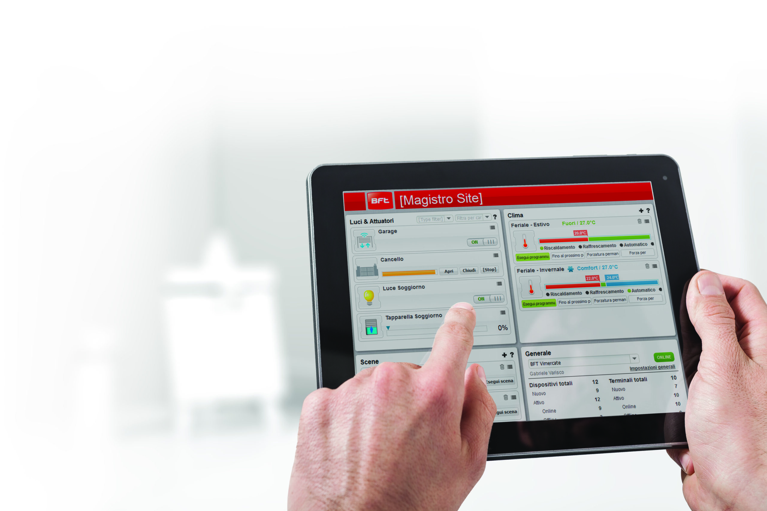 L’App Blue entry consente poi di gestire da remoto automazioni e accessi anche con smartphone. La sfera di controllo accessi basata su tecnologia domotica fa riferimento a Magistro, il sistema wireless di automazione domestica da remoto.