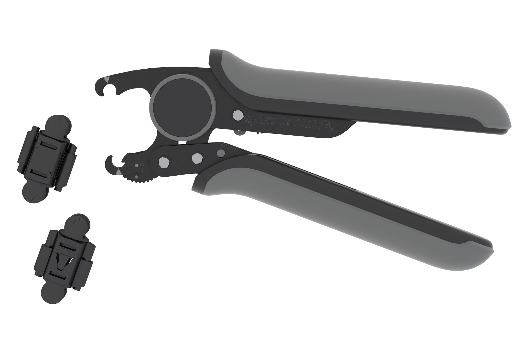 Un solo utensile è sufficiente per crimpare terminali con e senza collare isolante, fino a 18 mm di lunghezza, con sezioni dei cavi da 0,08 mm² a 16,0 mm², oltre che terminali doppi da 2 x 0,25 mm² a 2 x 10,0 mm².