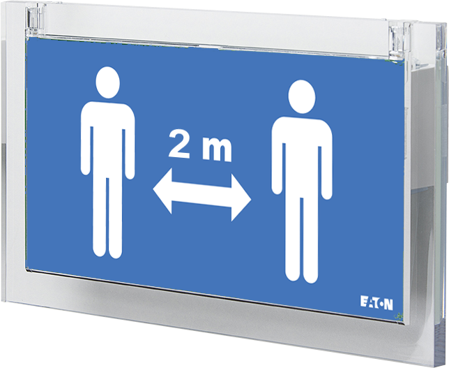 I pittogrammi per il distanziamento sociale per CrystalWay fanno leva sull’esperienza e il know-how di Eaton nel mercato dell’illuminazione di emergenza – come ad esempio l’elevata luminanza – per favorire la chiara visibilità della segnalazione, con l’obiettivo di educare gli occupanti dell’edificio e favorire il rispetto delle normative locali in tema di distanziamento sociale.