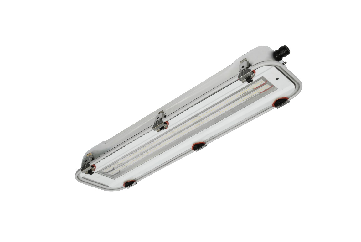 La plafoniera è dotata di strip LED con temperatura di colore 4000K e CRI≥80 e di lenti in resina siliconica antinvecchiamento e resistente ai raggi UV con rendimento > 95% in grado di garantire un elevato comfort visivo. La plafoniera è dotata di driver standard on-off resinato ed idoneo all’installazione in ambienti potenzialmente esplosivi.