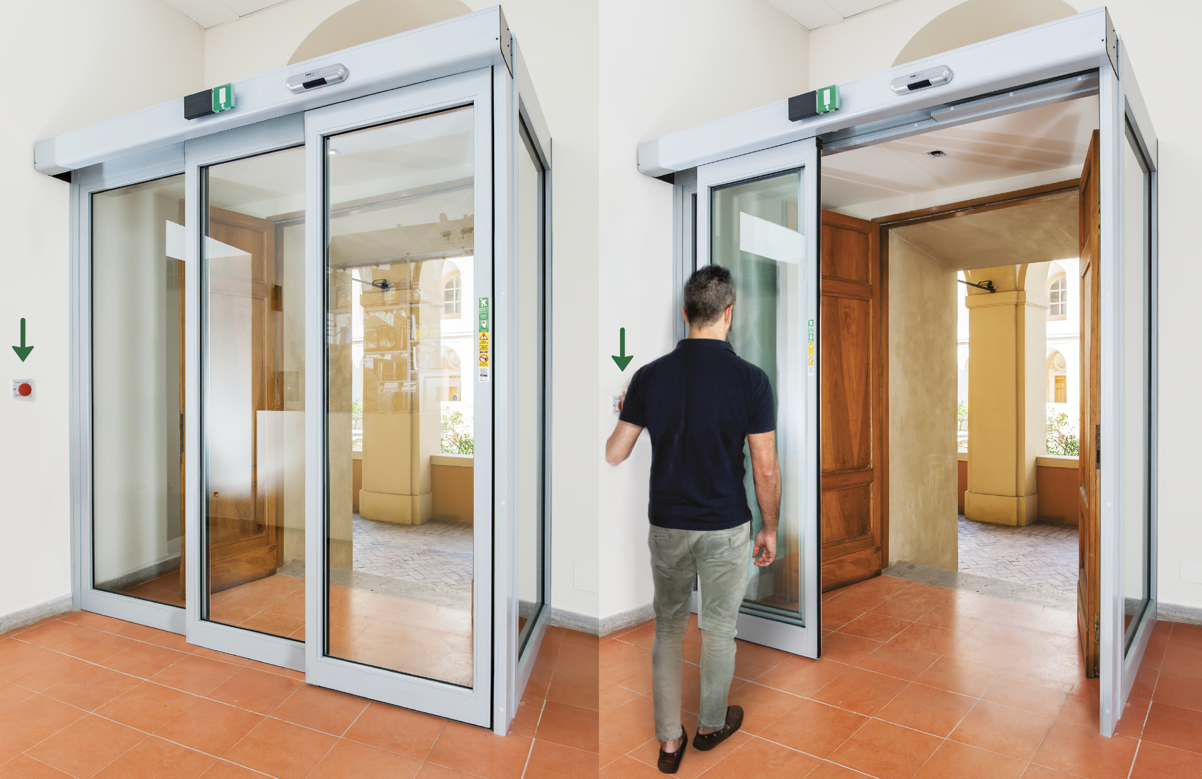 Le porte automatiche scorrevoli “ridondanti” Ponzi (Bagnara, RA) affidano la sicurezza all’automatismo in modo che l’apertura delle ante in caso di pericolo sia assicurata.
