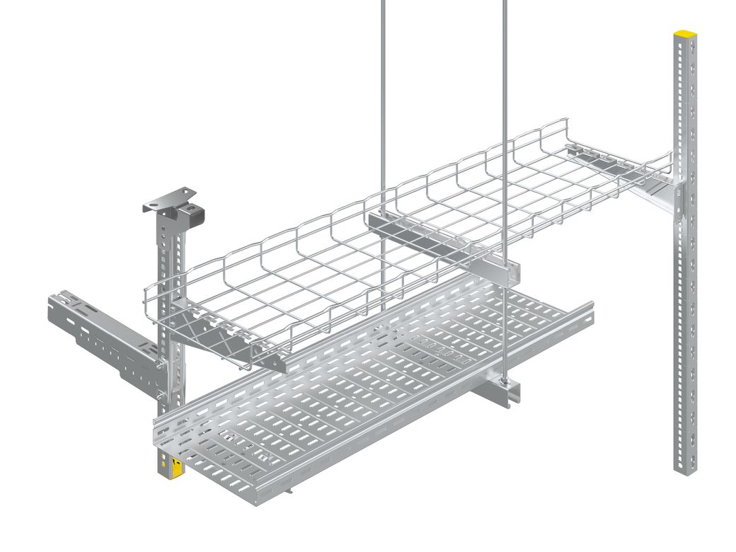 Semplici e rapidi da installare, i profilati Legrand (BTicino) per il supporto dei sistemi di canalizzazione in metallo rendono possibile il montaggio di tutti i tipi di mensole e passerelle presenti nel catalogo dell’azienda, da quelle chiuse e forate in lamiera alle passerelle a filo, ai traversini Legrand e Cablofil.
