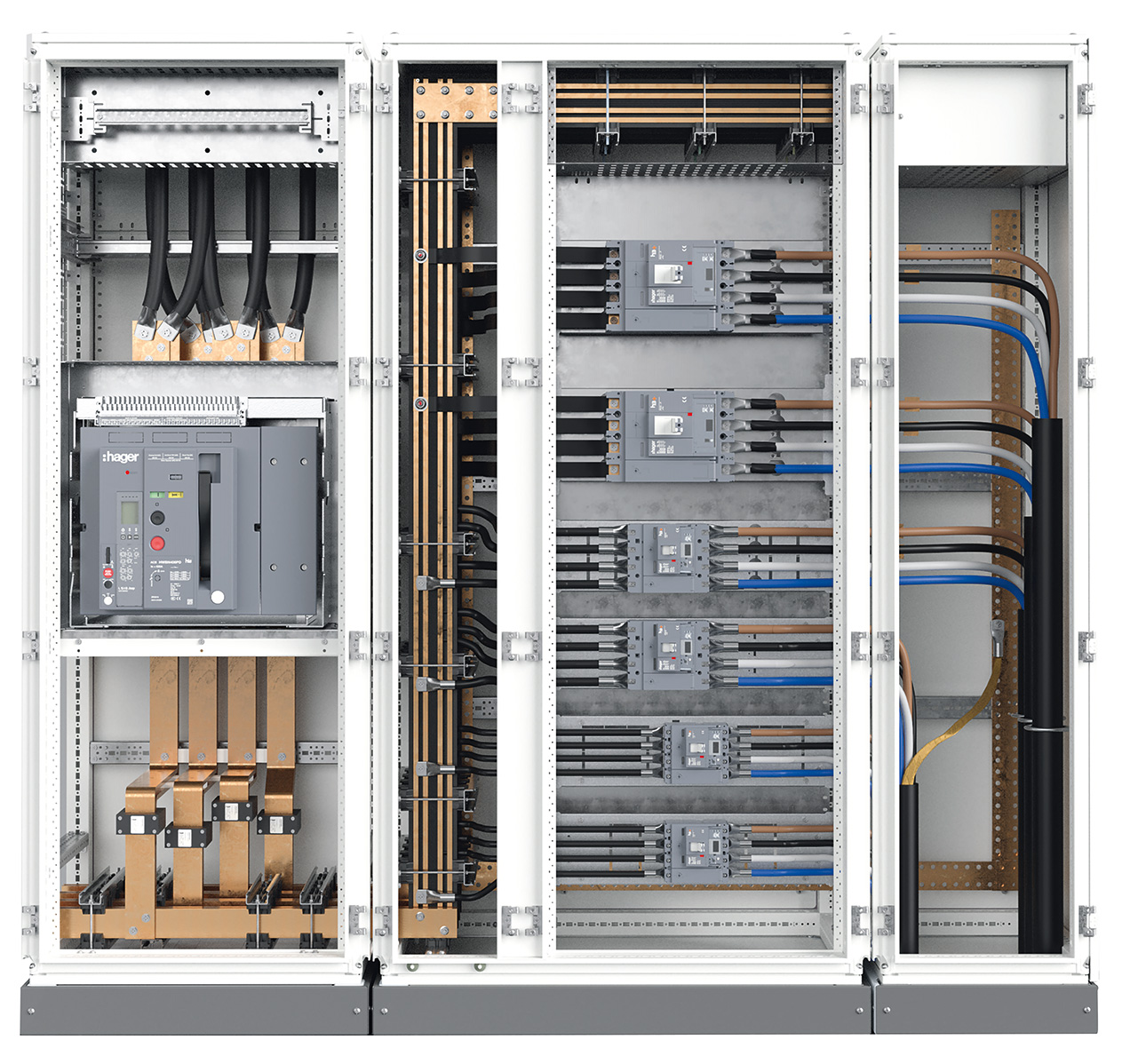 Pensato per rispondere ad una gamma complessa di esigenze, quadro evo può essere configurato con sistemi barre in rame o in alluminio. Le barre in rame permettono di creare soluzioni che raggiungono 4000 A, mentre le barre in alluminio offrono una maggiore velocità e flessibilità di connessione.
