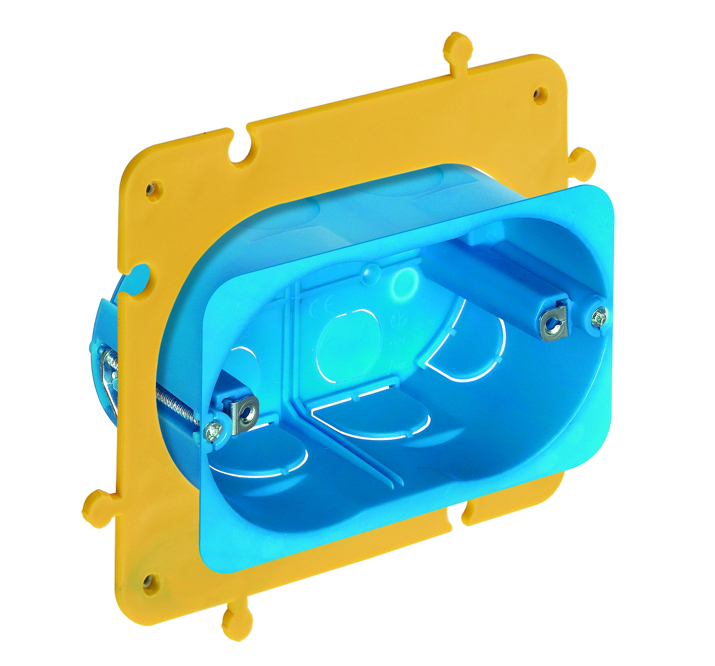 Queste scatole porta frutti consentono diverse modalità installative: frontale, forando la parete e infilando la scatola per poi fissarla con viti a serraggio progressivo, oppure dal retro, grazie a un apposito accessorio multifunzione che può essere utilizzato come dima di centraggio per la foratura e per applicazioni di scatole in batteria.