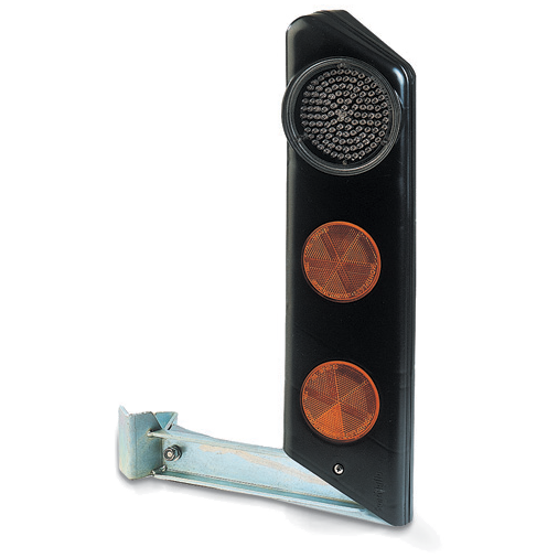 Materiali: Corpo testate realizzata in polietilene colore nero con cariche minerali ad alta densità e resistente agli UV Schermo trasparente lampada in policarbonato resistente agli UV. Connettore multipolare stagno per connessione lampada. 3 Catadiottri tondi diametro 80mm (due sul fronte, uno sul retro) colore arancio omologati secondo il codice della strada.