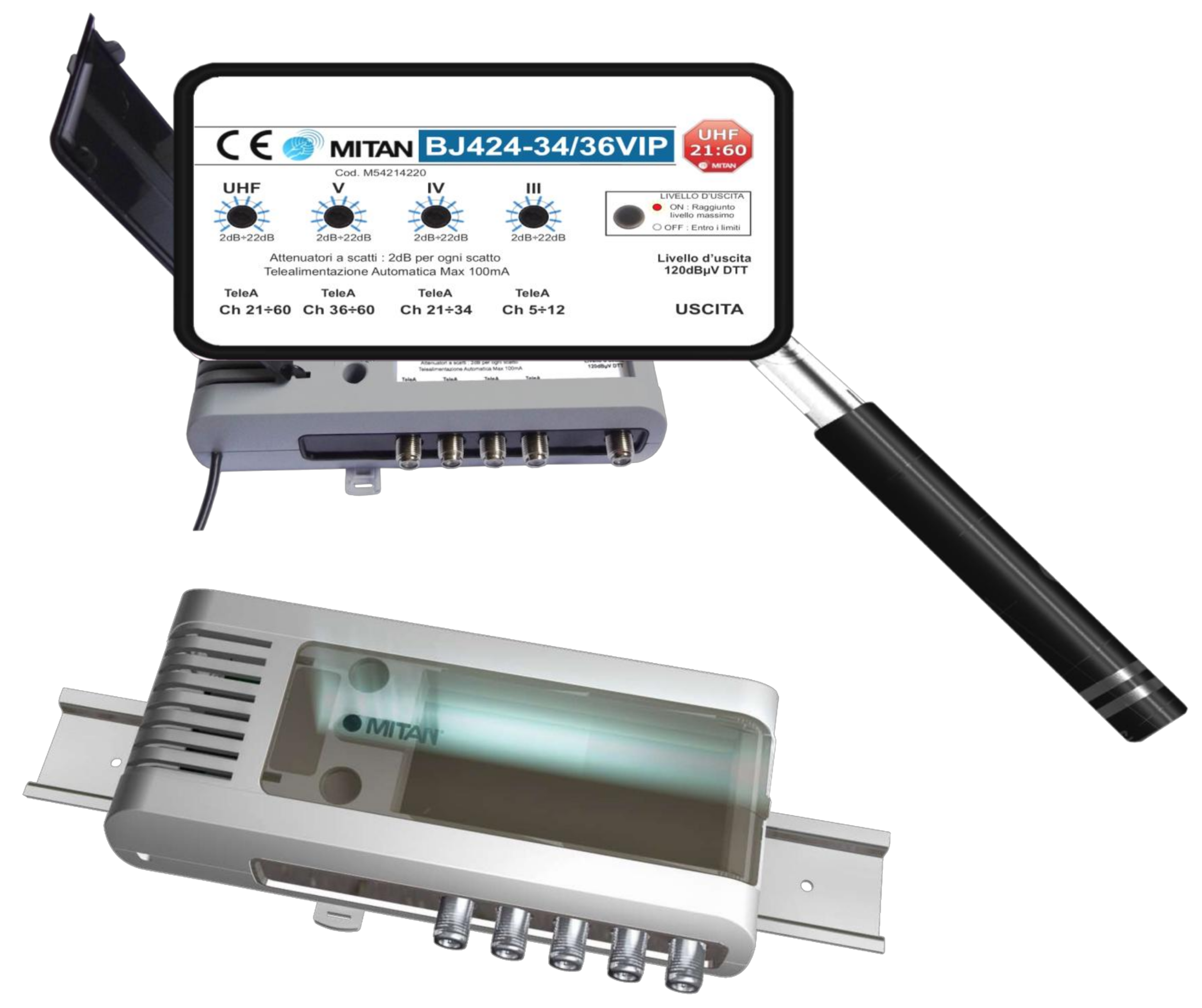 L’esclusivo sistema VIP, studiato appositamente dai tecnici Mitan, agevola l’installatore nella regolazione degli attenuatori, evitando fenomeni d’intermodulazione. Il segnale d’uscita è sottoposto a un’analisi costante grazie a un rivelatore che attiva la luce LED quando si supera la soglia di attenzione. Altra innovazione sono i miscelatori e gli amplificatori speciali; si tratta di piccoli lotti di produzione costruiti in base alle indicazioni dell’installatore e tarati su misura per ordinare al meglio le frequenze in etere in situazioni particolari.