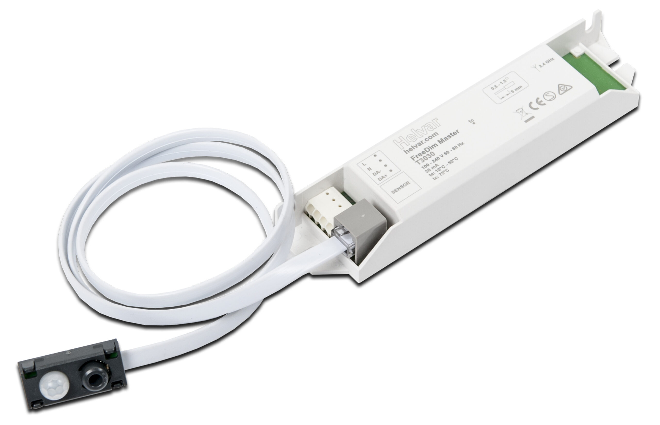 Composta da un elemento master, un sensore e un elemento follower opzionale, fino a 10 per sistema, collegato via wireless al master, freeDim è la soluzione wireless di Helvar.