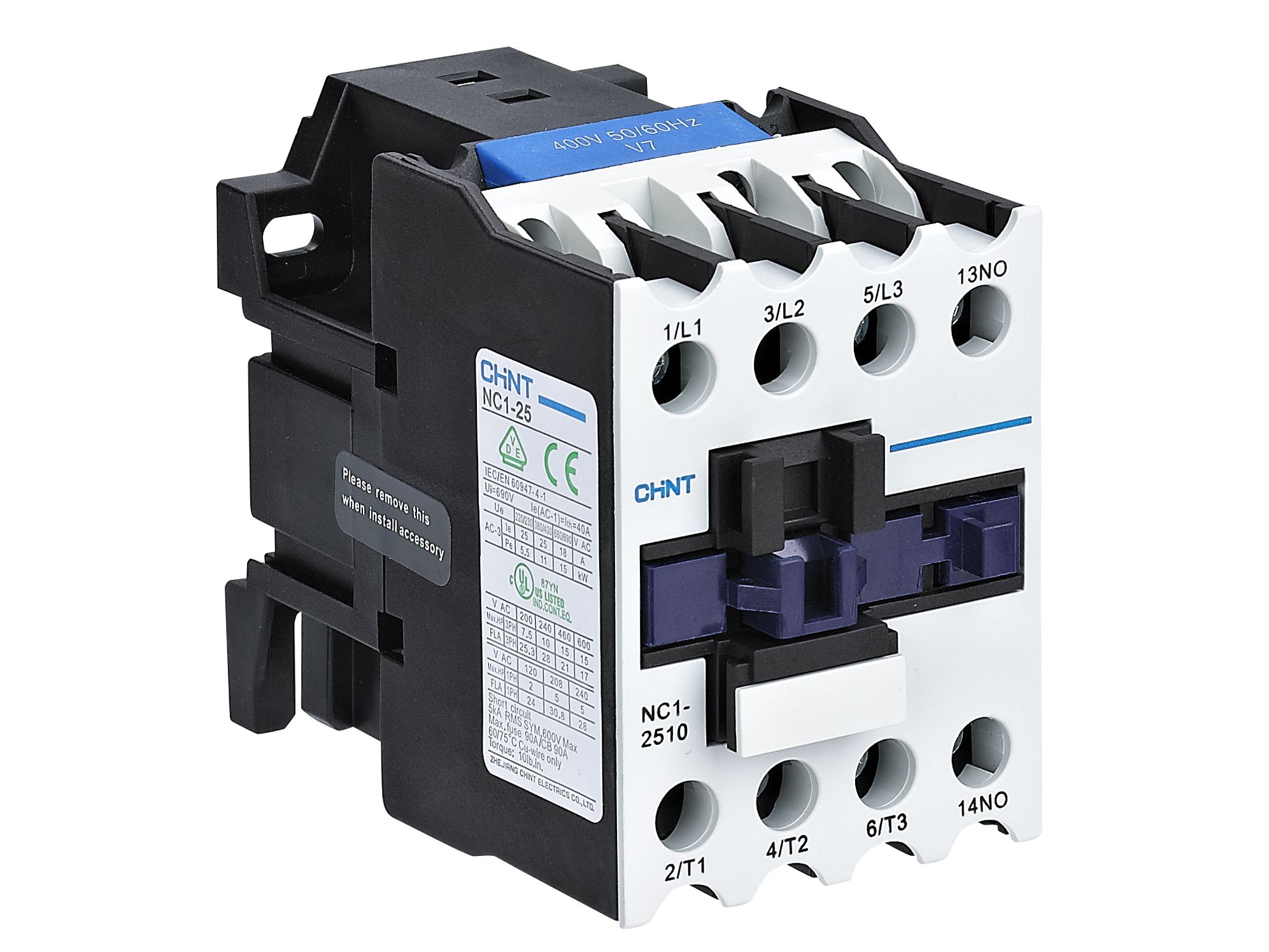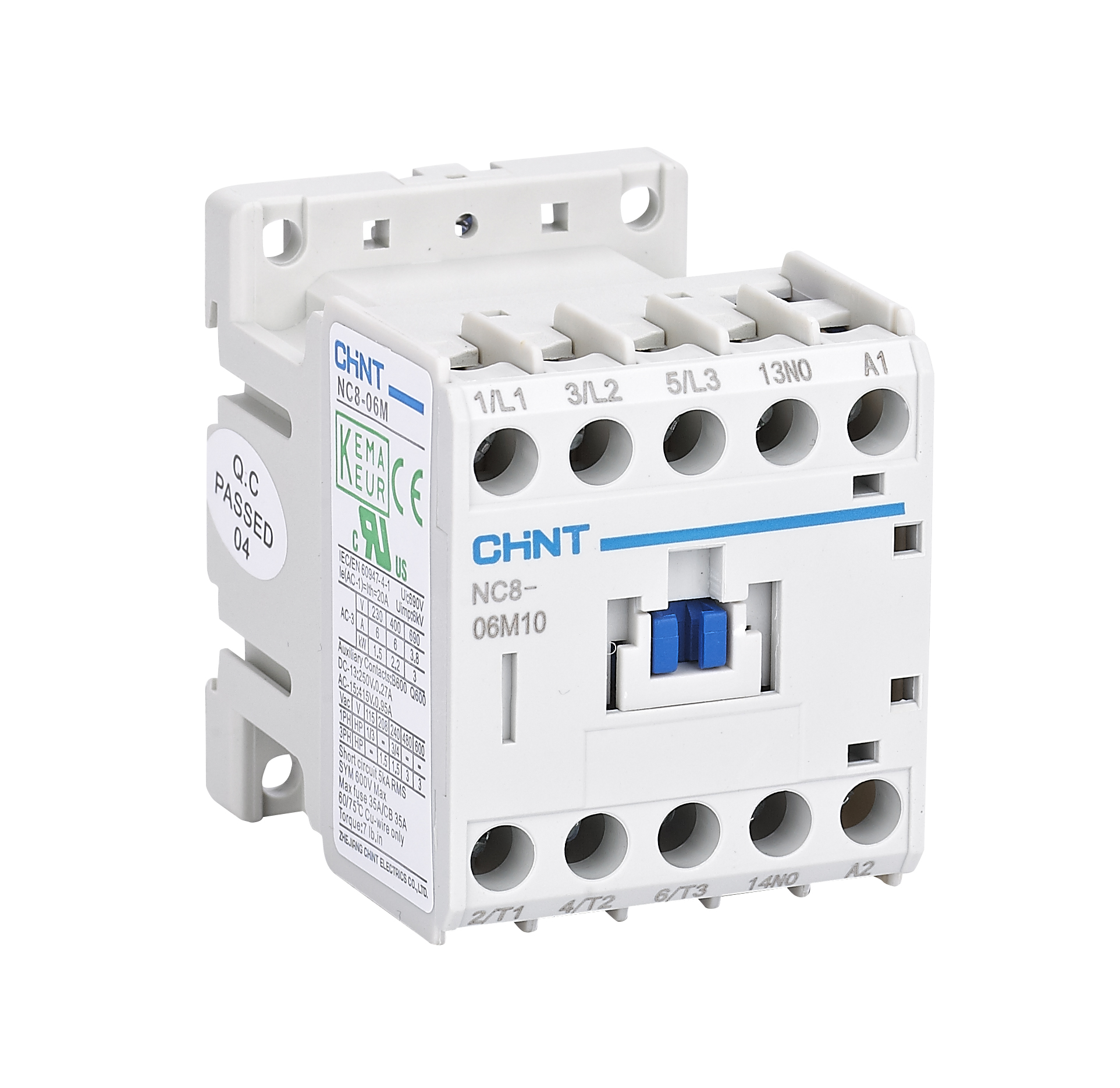 I contattori CHINT sono indicati per la gestione di potenze fino ai 450 kW. Sono disponibili in versione da 3 e da 4 poli e sono in grado di controllare motori elettrici sia in categoria d’impiego AC3 che AC4 a 50/60 Hz con tensione d’esercizio fino ai 690 VAC.